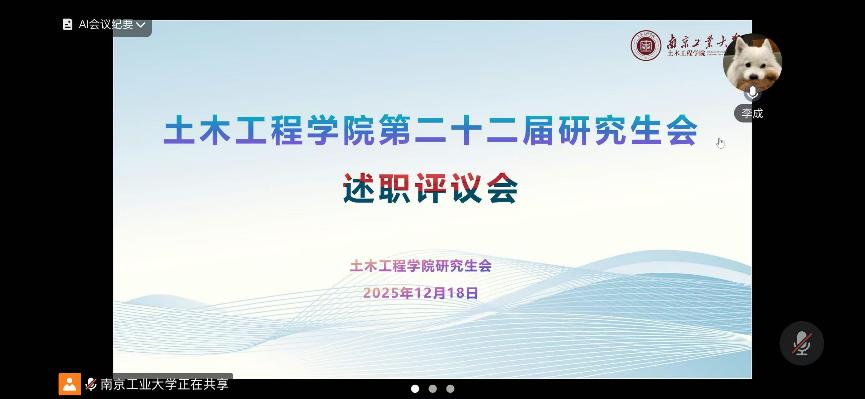 为进一步加强学院研究生会内部沟通,提升学院研究生会的服务质量,12月18日,土木工程学院研究生会举办2025-2026学年第一学期述职评议会。研究生会辅导员张昊、院研究生会主席团成员和各部门负责人参加本次会议。
