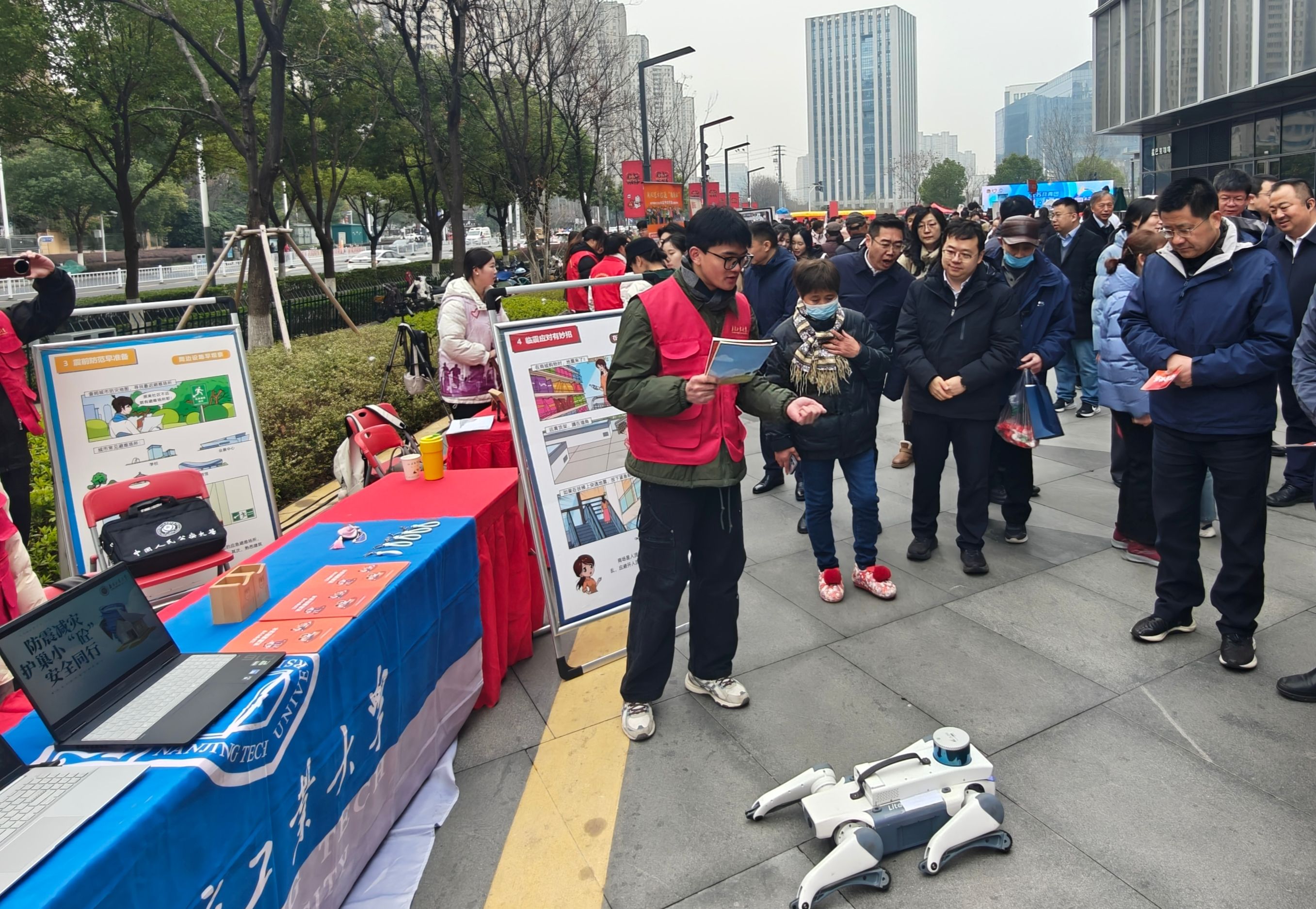活动现场,团队打造的建筑安全科普展区人头攒动。志愿者们发放抗震避险手册,结合展板生动讲解地震避险知识。机器狗灵活跳跃,志愿者借此讲解其在灾后搜救中的应用。高柔韧自感知防撞系统桥梁模型的精巧设计引发观众对桥梁防撞的浓厚兴趣,成为热门“打卡点”。在互动体验区,孩子们动手操作模型,家长听取居家安全知识。活动突出以喜闻乐见的形式和通俗易懂的语言开展志愿科普宣传,寓教于乐,乐教乐学,活动生动展现了南工大青年以专业所长赋能志愿服务的青春担当。