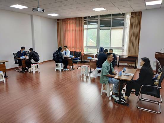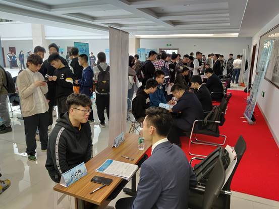 宣讲结束后,参会人员转至立德楼一楼大厅进行招聘答疑及现场面试。现场气氛十分热烈,同学们积极参与互动,咨询及投递简历的同学络绎不绝。