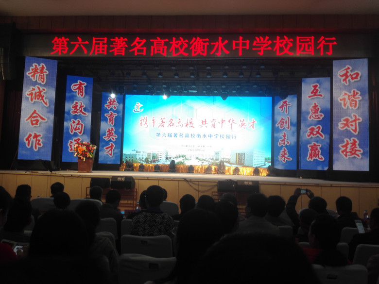 河北衡水中学始建于1951年, 2016年共有139名学生被清华大学、北京大学录取,1462名学生被“985”高校录取,30名同学就读香港名校, 106人就读国外名校。今年是我校第二次参加衡水中学校园行活动,对于提高我校知名度和美誉度,促进生源质量不断提高具有重要意义。