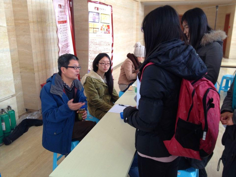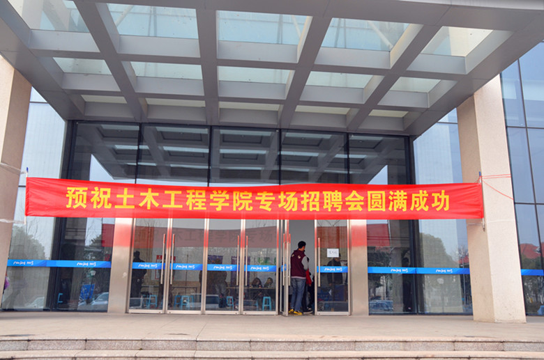 寒风吹雾霾,浦园天气新。针对本三学生就业较为困难的实际,为更好地调动本三学生的就业积极性,提升用人单位招聘工作的有效性,土木工程学院于12月20日上午在江浦大礼堂门厅举办了专场招聘会。本次招聘会共有近20家企业参加,为在校生提供了80多个岗位,毕业生近百人参加,全程历时约两个半小时,土木学院党委书记胡夏闽、党委副书记熊中宏亲临指导。活动得到了学工处和兄弟学院的大力支持。