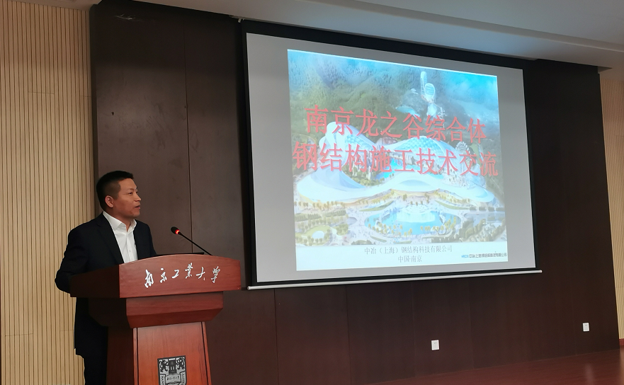 4月16日下午,中冶(上海)钢结构科技有限公司刘明路副总工程师带领团队走进南京工业大学江浦校区,参观了土木工程学院现代木结构和复合材料结构实验室,为学院师生带来龙之谷项目、江北美术馆项目复杂钢结构工程施工技术专题报告,介绍了中冶(上海)钢结构科技有限公司的发展历程、完成的重要工程项目等,表达了与南京工业大学共建产学研合作基地的构想。交流会由建筑工程系主任孙广俊副教授主持。