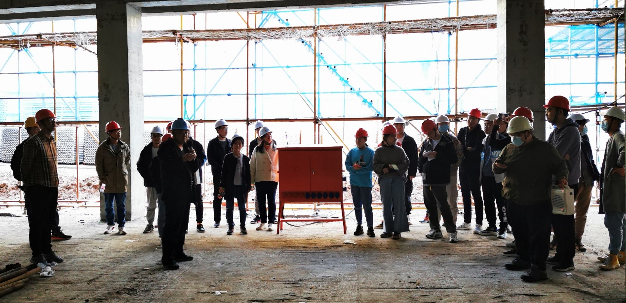 江苏贡固建设工程有限公司项目负责人张秀平总工为同学们讲解施工关键技术