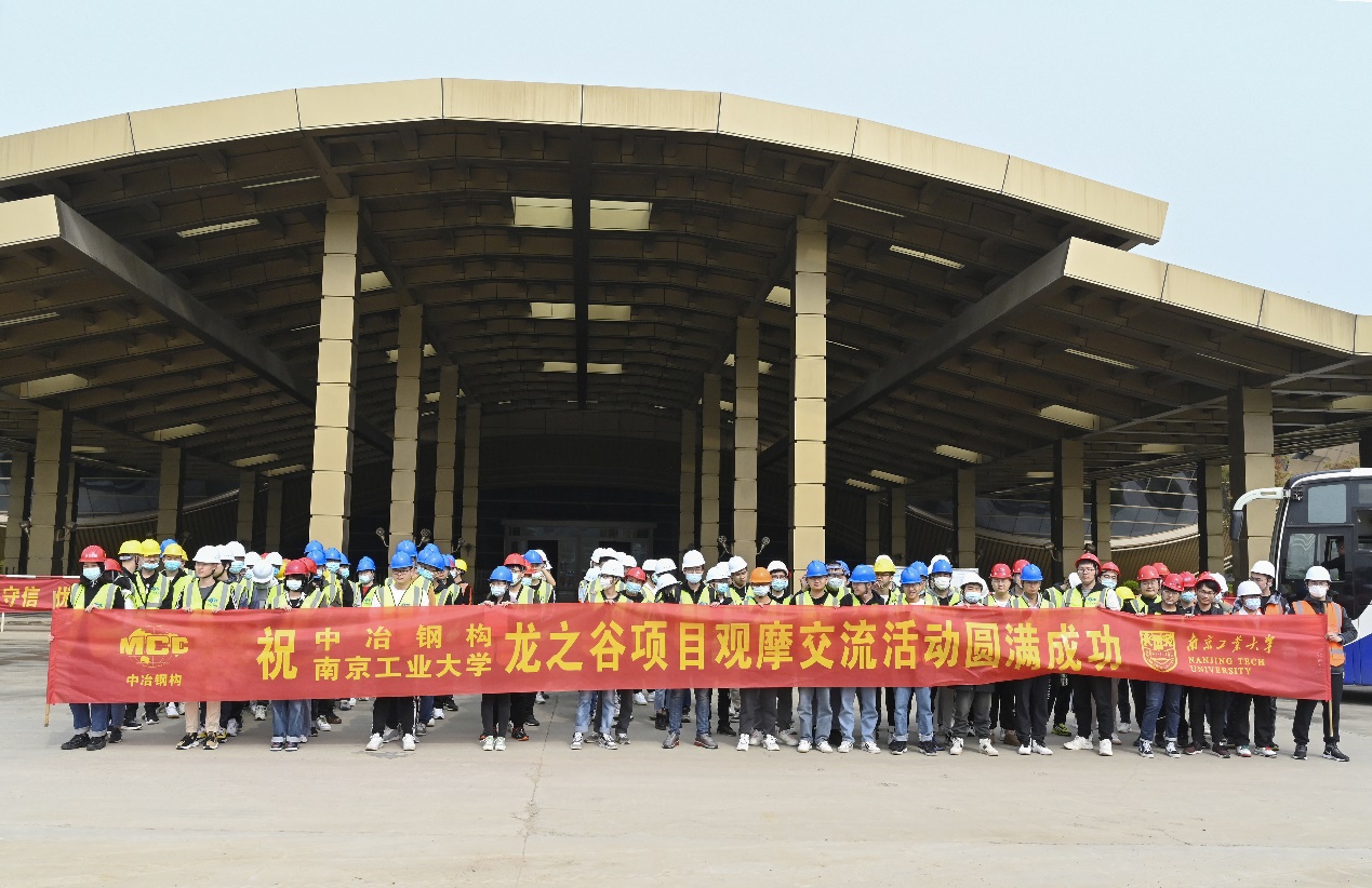 4月16日上午,在中冶(上海)钢结构科技有限公司刘明路副总工程师等领导的指导、关心和帮助下,同学们参观了南京东方龙之谷钢结构工程项目,该项目位于南京市江北新区沿山大道,总建筑面积约60万平方米,由五个场馆和龙藏山谷-溶洞等六部分组成,是全亚洲最大的综合性室内体验园。场馆采用大跨度钢桁架体系,通过现场施工负责人任光辉、陈杰的讲解,同学们对钢桁架体系的构造和施工关键技术有了更深刻的认识。