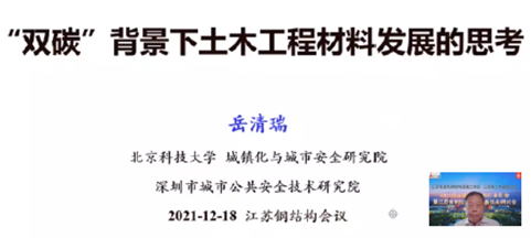 2021年12月18日,由江苏省建筑钢结构混凝土协会和江苏省土木建筑学会联合主办、南京工业大学土木工程学院和江苏沪宁钢机股份有限公司协办的“2021年江苏省钢结构行业年会暨江苏省钢结构发展与新技术研讨会”顺利召开,本次会议主题为“双碳战略背景下钢结构行业发展的挑战与机遇”,采用线下线上结合的方式,线上采用腾讯会议,线下会场设在南京工业大学土木工程学院。在线出席会议的领导及专家有:中国钢结构协会会长岳清瑞院士,同济大学本科生院院长赵宪忠教授,上海建工集团总工程师陈晓明教授,江苏省建筑钢结构混凝土协会会长刘加平院士、常务副会长曹平周教授等;在线下会场出席会议的有江苏省土木建筑学会卢红标副秘书长,江苏省建筑钢结构混凝土协会副会长陈忠荣董事长,江苏省土木建筑学会钢结构专业委员会主任委员董军教授,副主任委员舒赣平教授、吴春良研高工、夏长春研高工,会议协办单位南京工业大学土木工程学院院长王曙光教授。来自全省钢结构行业代表共计200余人参加会议。
