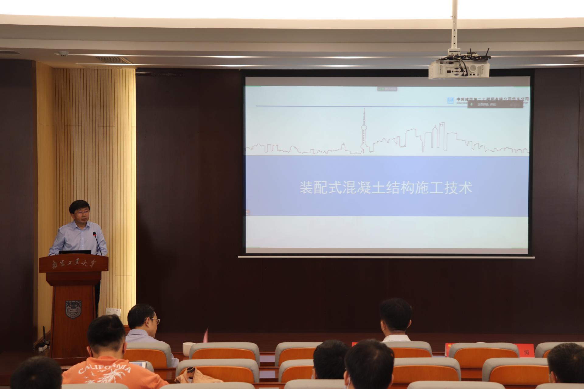 随后,苏宪新总工以“装配式混凝土结构施工技术及上海方舱医院援建纪实”为题,围绕装配式建筑发展现状,详细介绍了装配式混凝土构件加工、框架结构施工等工程实例和技术规范。同时,结合他本人今年四月援建上海方舱经历,希望广大研究生胸怀“国之大者”,以高度社会责任感和家国情怀投身祖国建设。