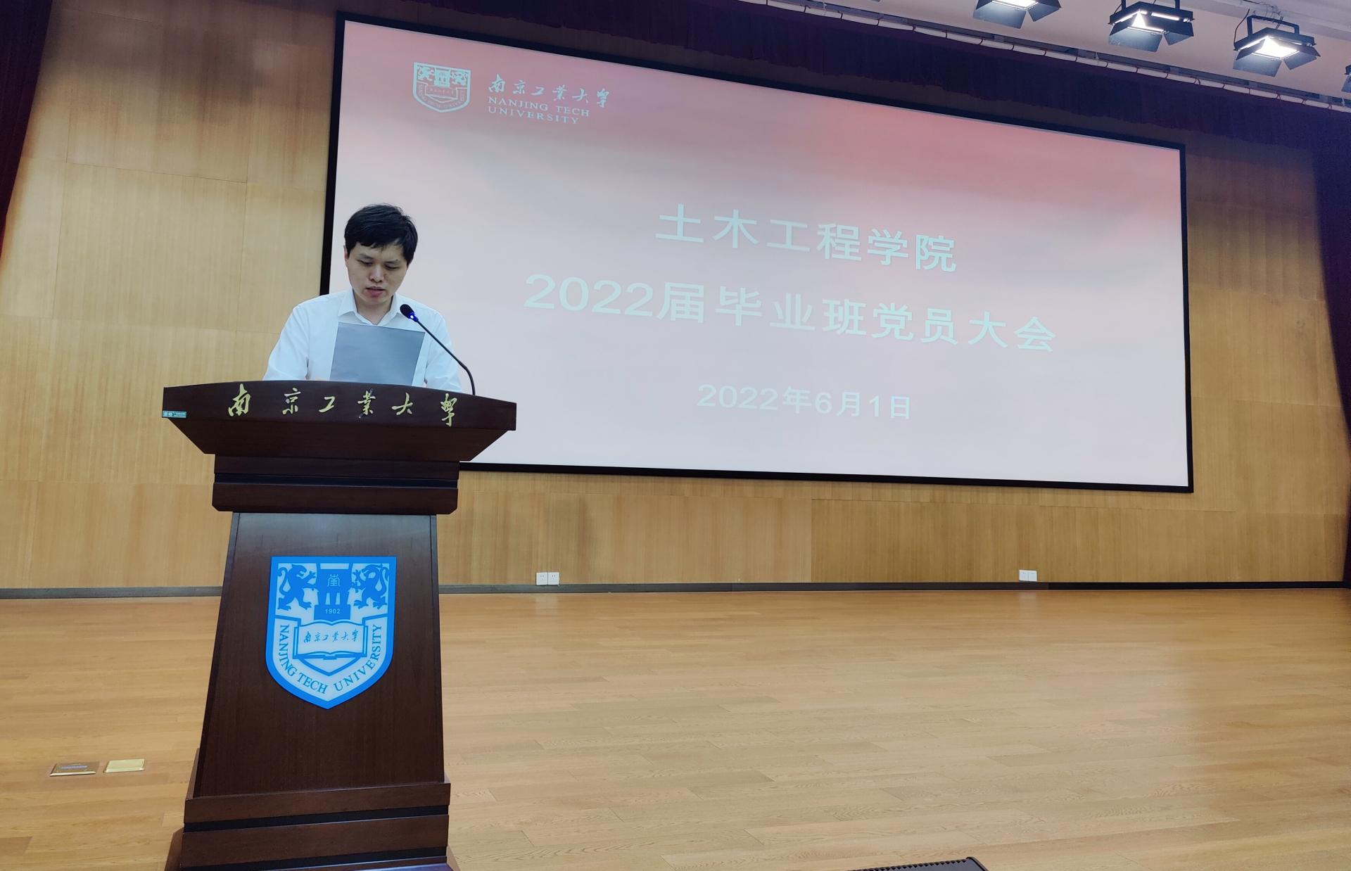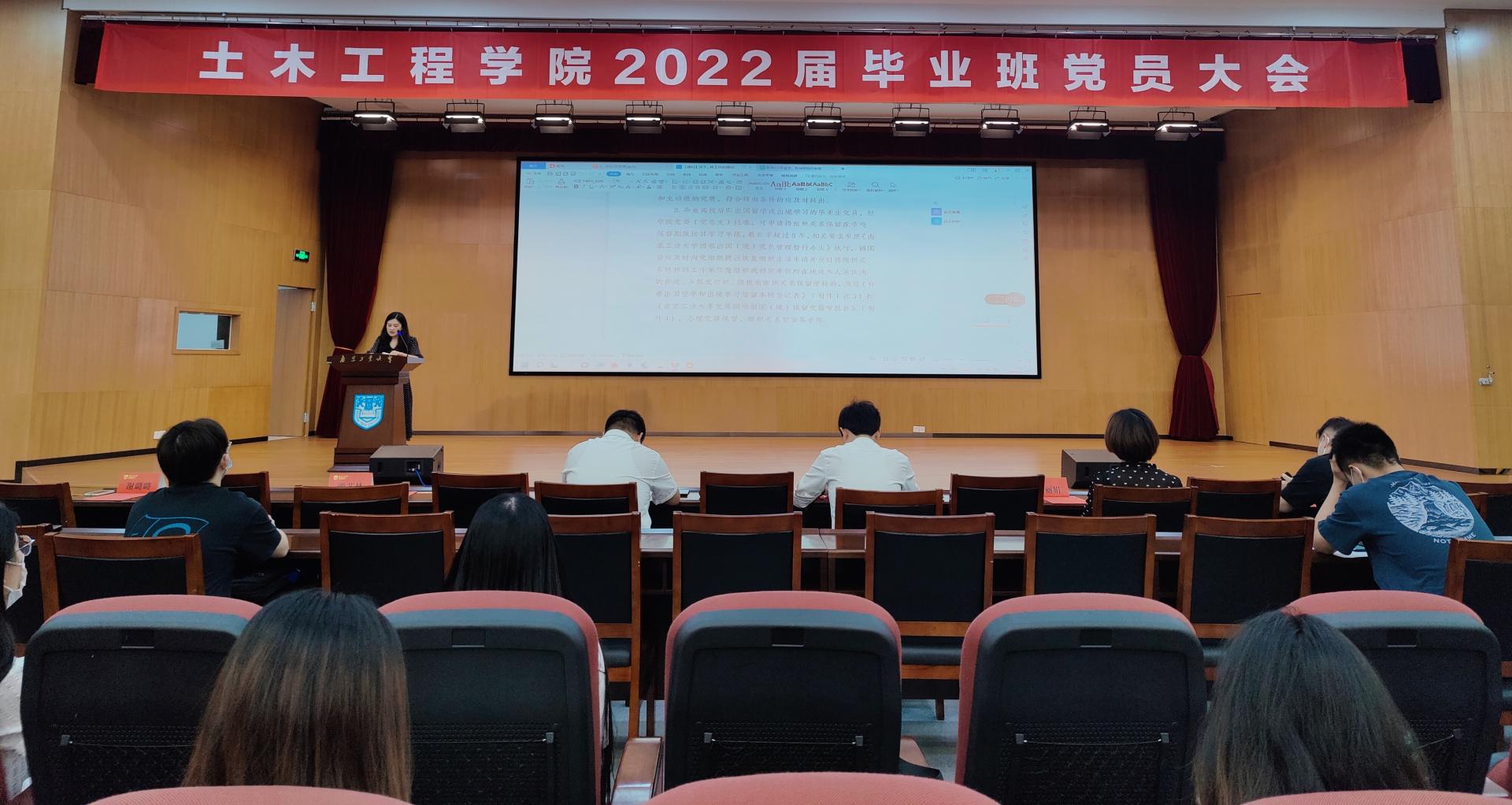 6月1日上午,土木工程学院2022届毕业班党员大会在浦江报告厅举行。学院党委书记张涛、学院兼职组织员谢璐璐、学院毕业班辅导员汤丽娟、李晓、游艺林以及毕业班全体党员出席会议。会议由学院党委副书记路遥主持。
