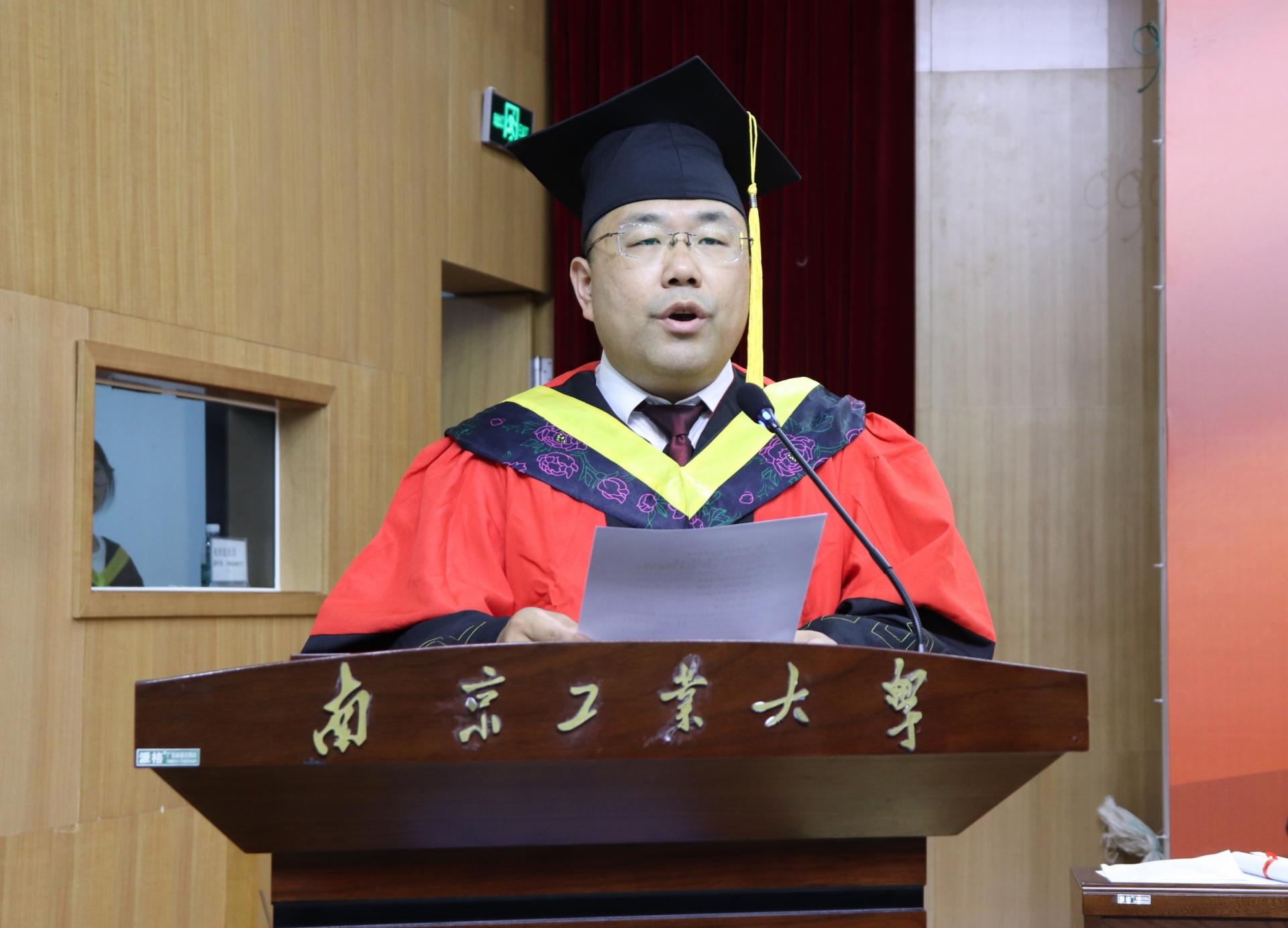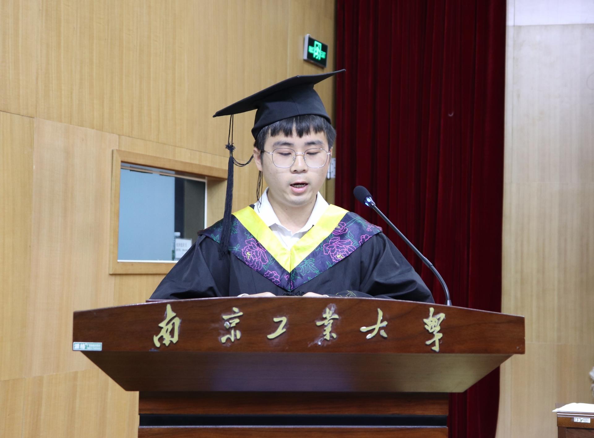 在热烈的掌声中,党委常委、副校长陆伟东讲话。他对同学们圆满完成学业、即将踏上新征程表示祝贺。临行之际,陆伟东副校长对毕业生们提出三点希望:一要胸怀强国之志,做砥砺前行的奋斗者;二要饱含爱国之情,做时代变革的开拓者;三要担当报国之行,做脚踏实地的实干者。谆谆嘱托和亲切叮咛引起毕业生的强烈共鸣,现场响起热烈的掌声。