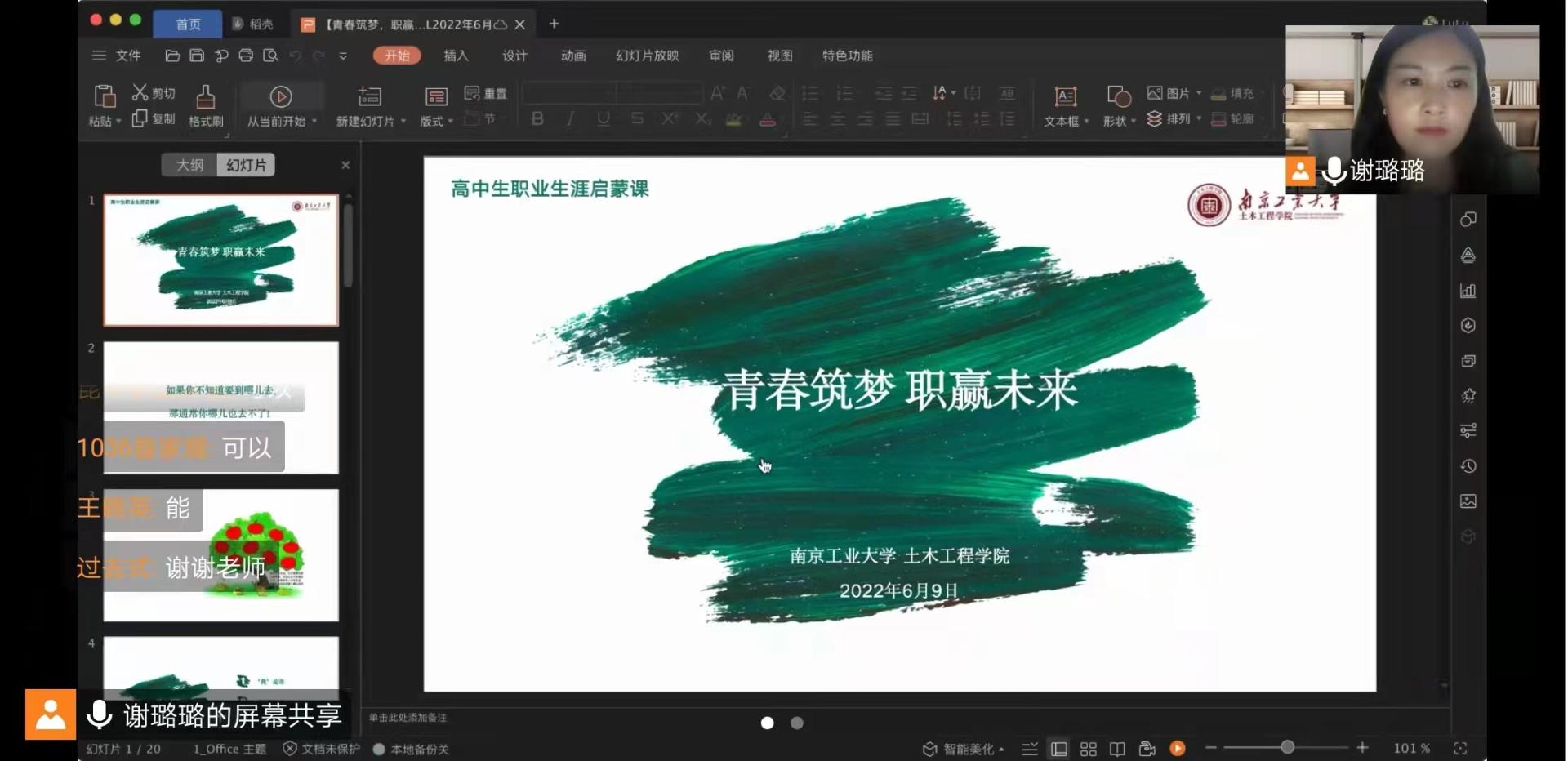 在生涯发展启蒙讲座中,谢璐璐老师结合职业生涯彩虹图和霍兰德兴趣理论,以分享和互动测验的形式带领高中学生认知自我、探索生涯。同时,本次中学生生涯公开课也为进一步拓展与基地中学的嵌入式宣传打开了新的切入点。
