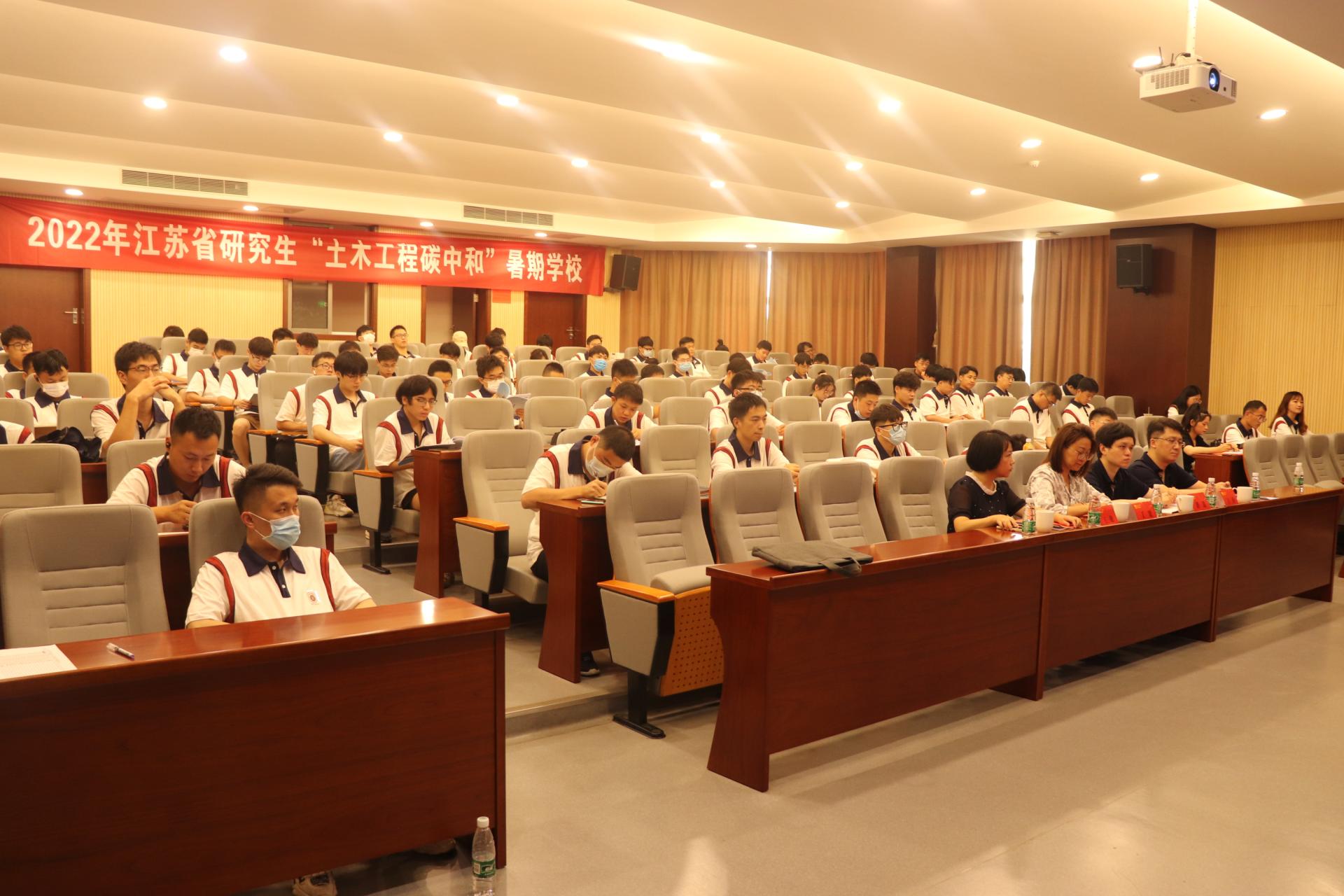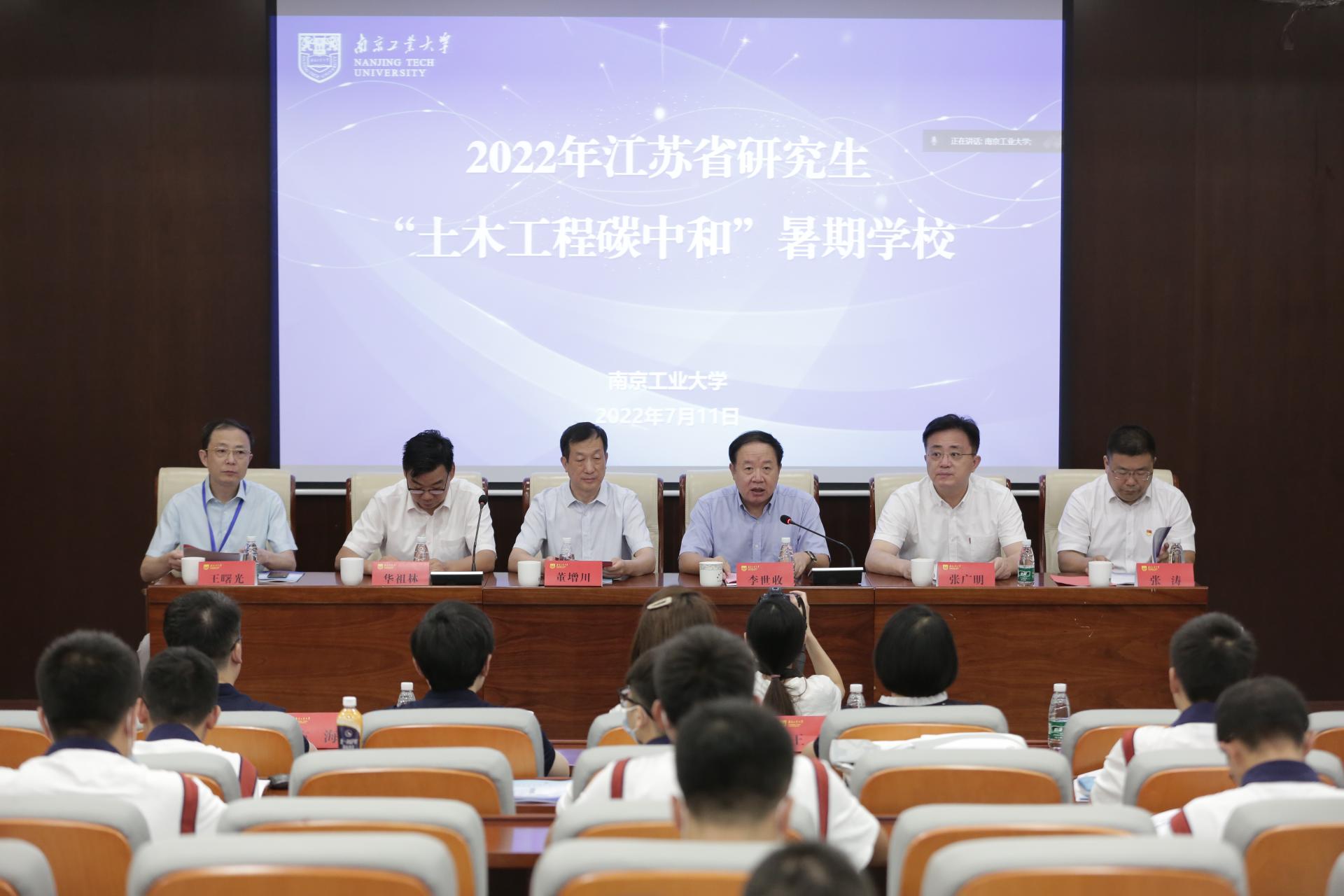 7月11日上午,2022年江苏省研究生“土木工程碳中和”暑期学校开学典礼在我校立德楼208报告厅举行。江苏省工学4类研究生教育指导委员会主任委员、河海大学副校长董增川,南京工业大学副校长李世收,河海大学研究生院常务副院长华祖林,我校党委研工部部长、研究生院常务副院长张广明,党委研工部副部长、研究生院副院长丁贤以及土木工程学院全体领导班子、教师代表和学员代表参加典礼。开学典礼由土木工程学院院长王曙光主持。