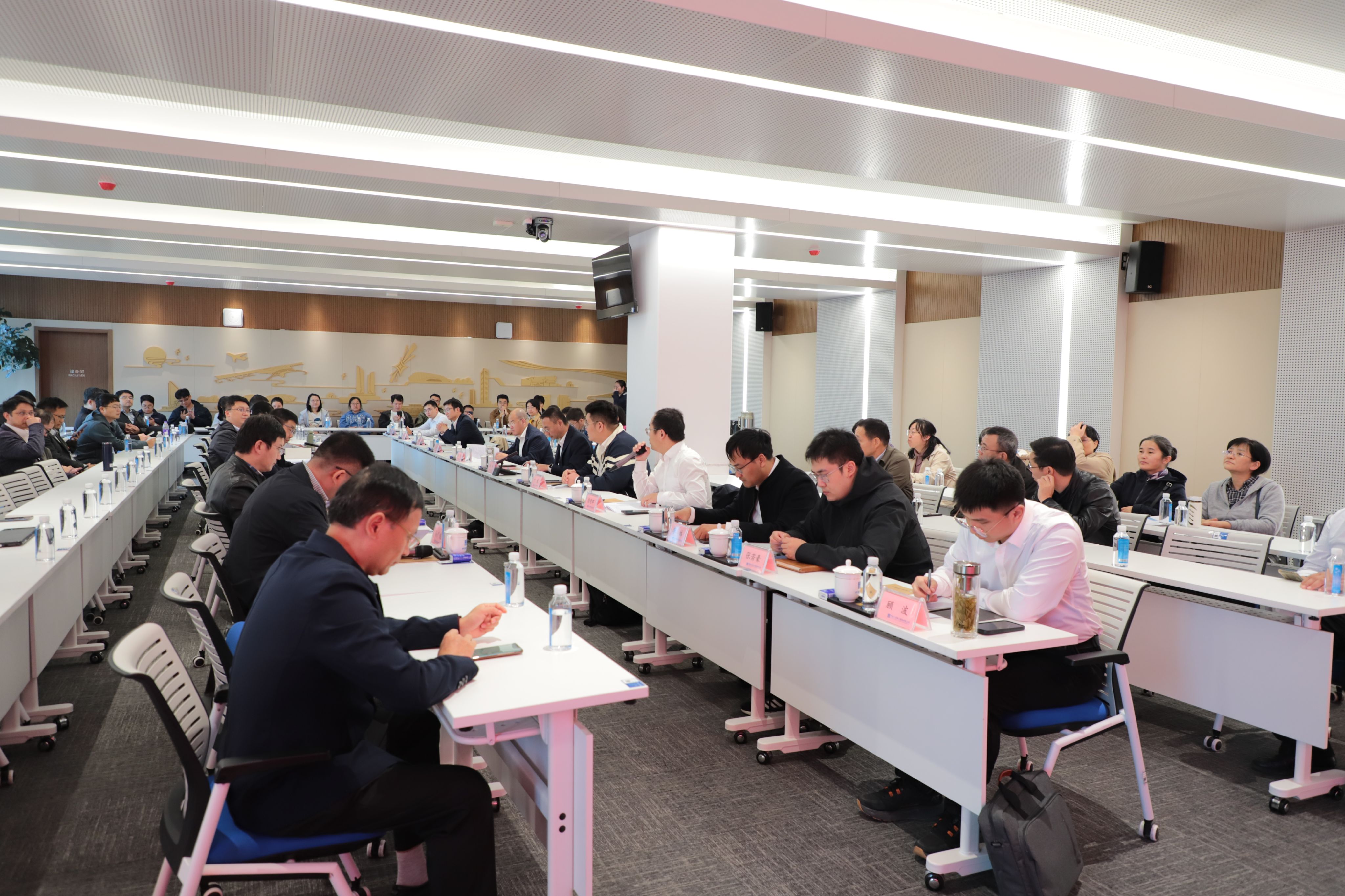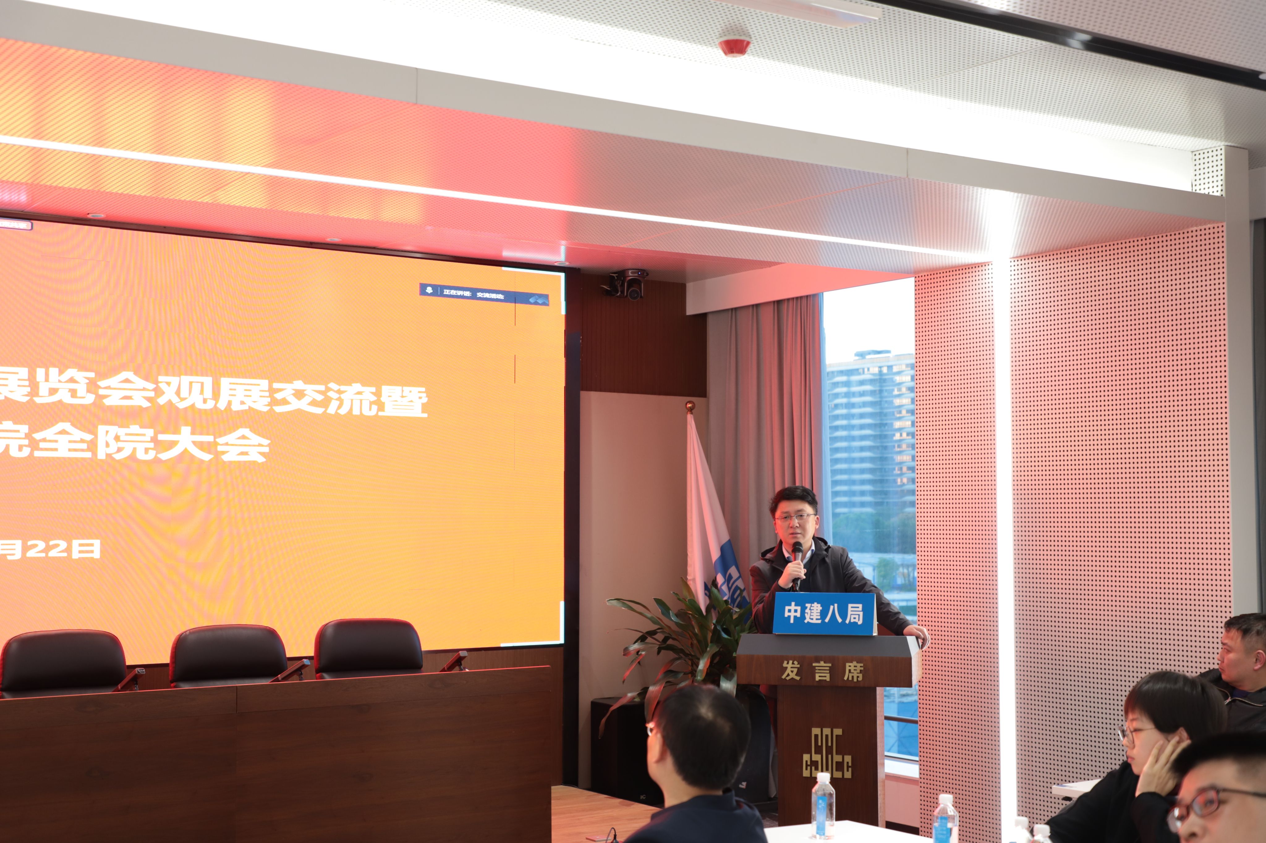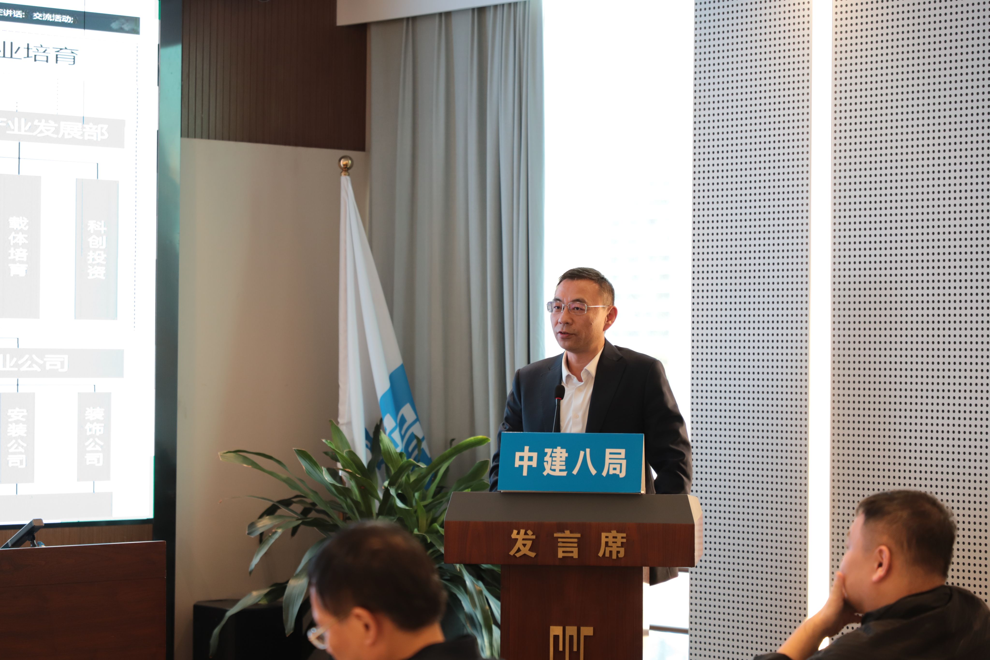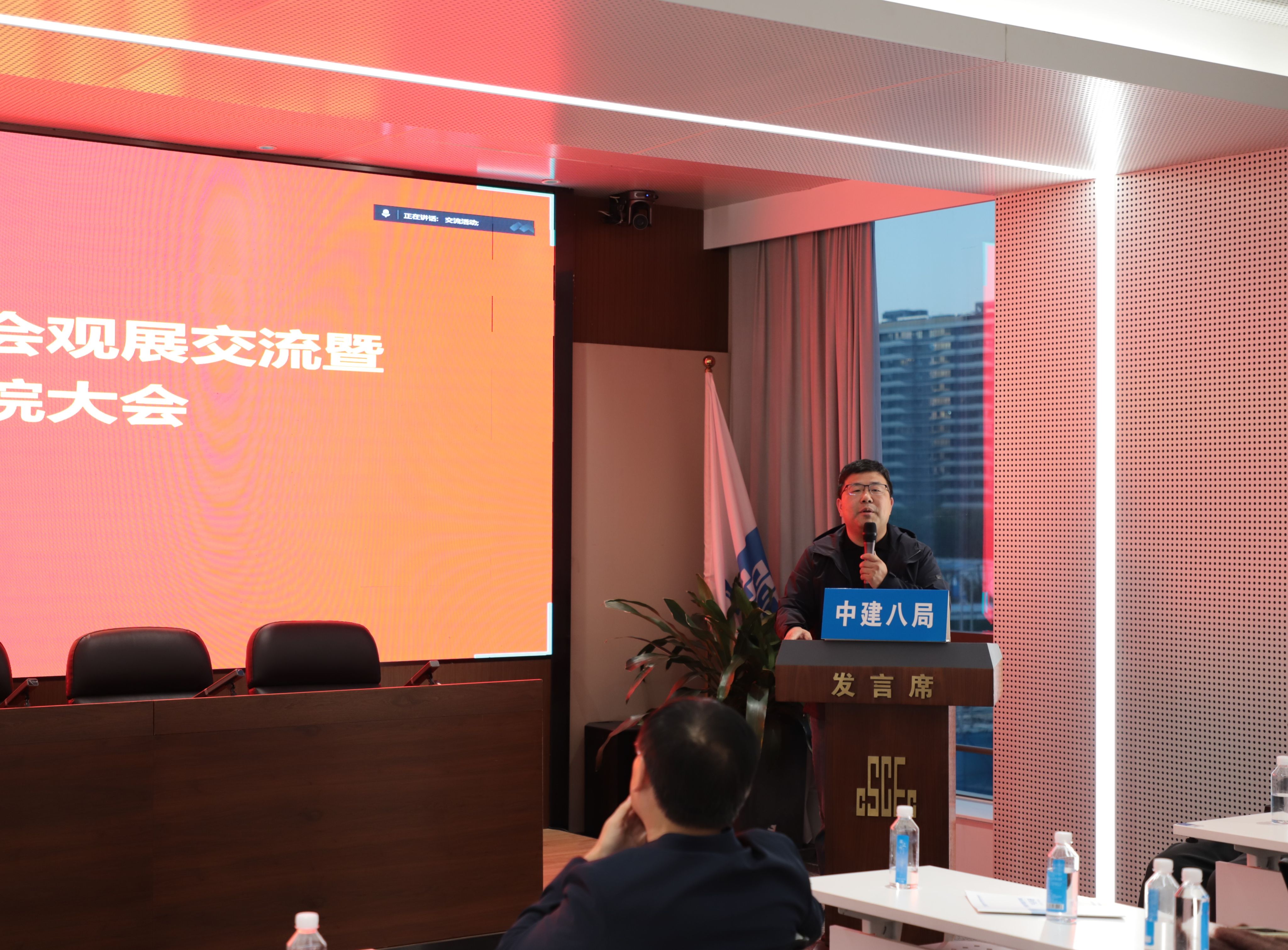 观摩结束后,双方进入合作交流环节。该环节由中建八局三公司工程研究院负责人徐晓辉主持。中建八局三公司总工程师陈刚作专题报告,分享了行业发展趋势洞察与企业创新实践经验。与会人员围绕建筑科技前沿与校企协同机制展开深入讨论,一致认为应加强资源共享与项目协作,携手构建建筑行业创新发展新格局。