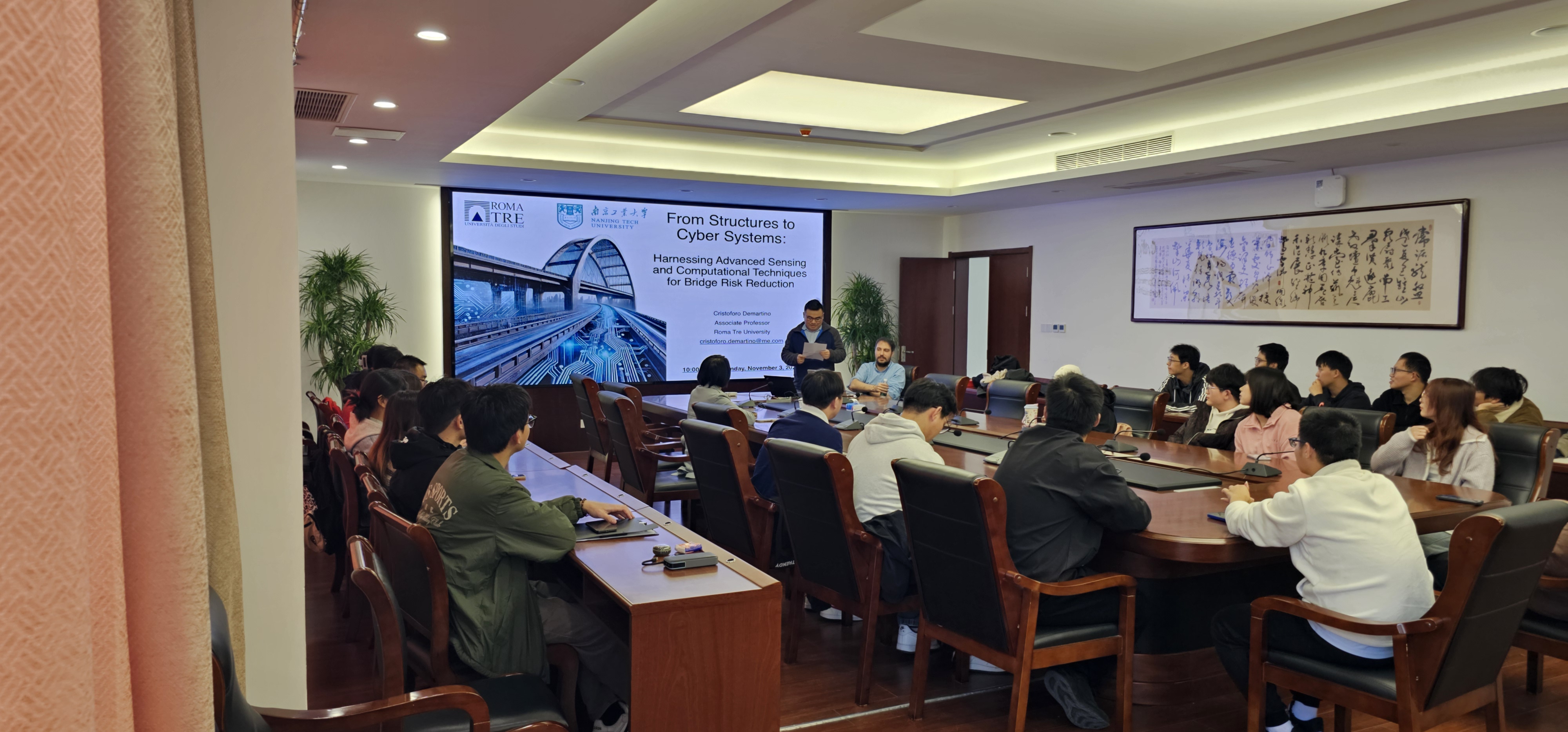 近日,意大利罗马第三大学建筑学院Cristoforo Demartino副教授应邀为我校师生作英文学术报告,报告主题为“From Structures to Cyber Systems: Harnessing Advanced Sensing and Computational Techniques for Bridge Risk Reduction”。