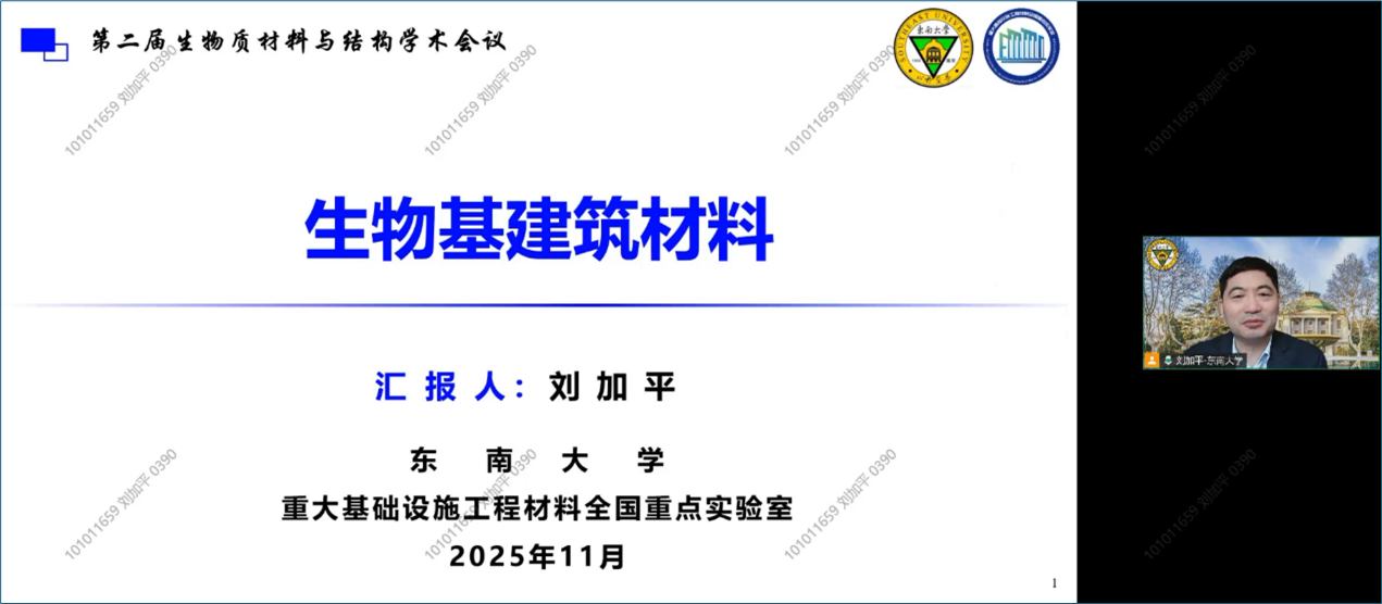 会议通过主旨报告、特邀报告、大会报告等形式,深入探讨了生物质材料与结构的基本理论、加工制备和工程实践等热点问题。东南大学刘加平教授作了题为“生物建材研究与应用”的主旨报告,系统阐述了生物基建筑材料作为可持续发展有效途径的技术优势,并从减水剂、水化热调控材料、建筑涂料等多个具体方向,展望了其智能化发展前景。来自全国各地专家学者呈现了生物质材料与结构领域的二十余场精彩报告,其中包括1个主旨报告和4个特邀报告,共计200余人参加了本次会议。