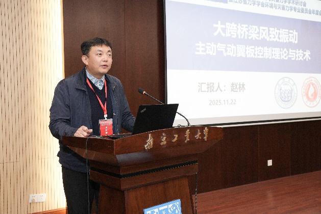 赵林教授作题为“大跨桥梁风致振动主动气动翼板控制理论与技术”的特邀报告