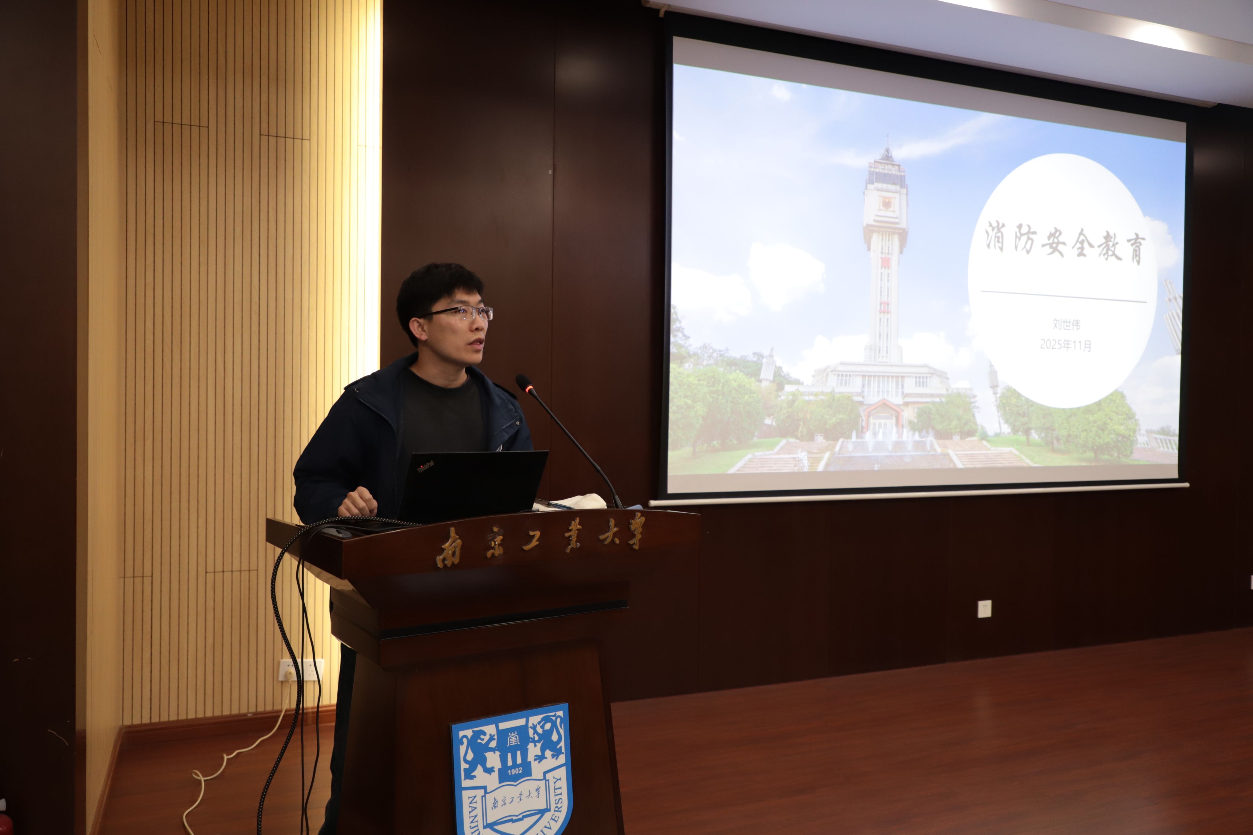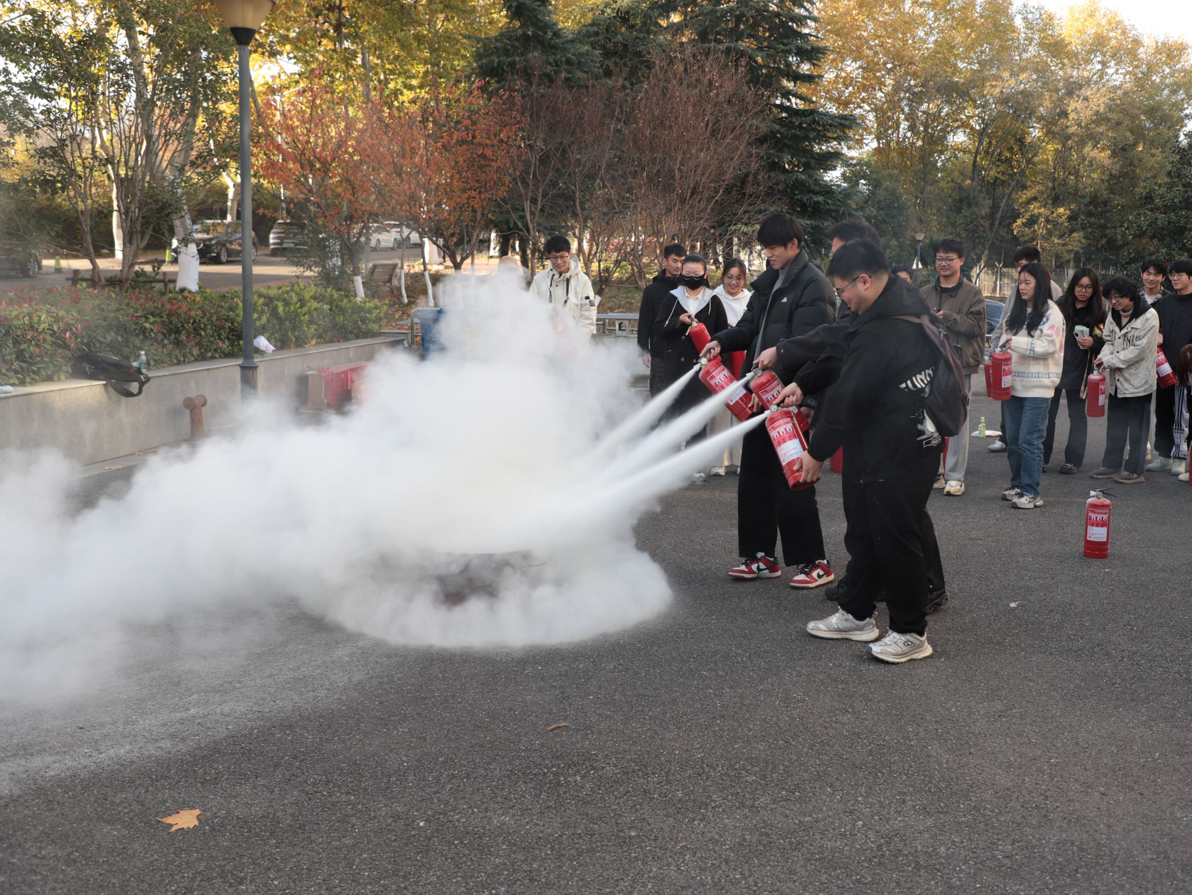 会议期间,杨会峰副院长介绍了活动背景及学院安全工作汇报,刘世伟科长和李强科长分别以《六院联合安全教育》和《实验室安全教育培训》为题做了邀请报告。活动第二阶段的消防演练由刘世伟科长指挥,主要通过模拟火情,进行安全疏散与逃生、消防器材操作与灭火演练。