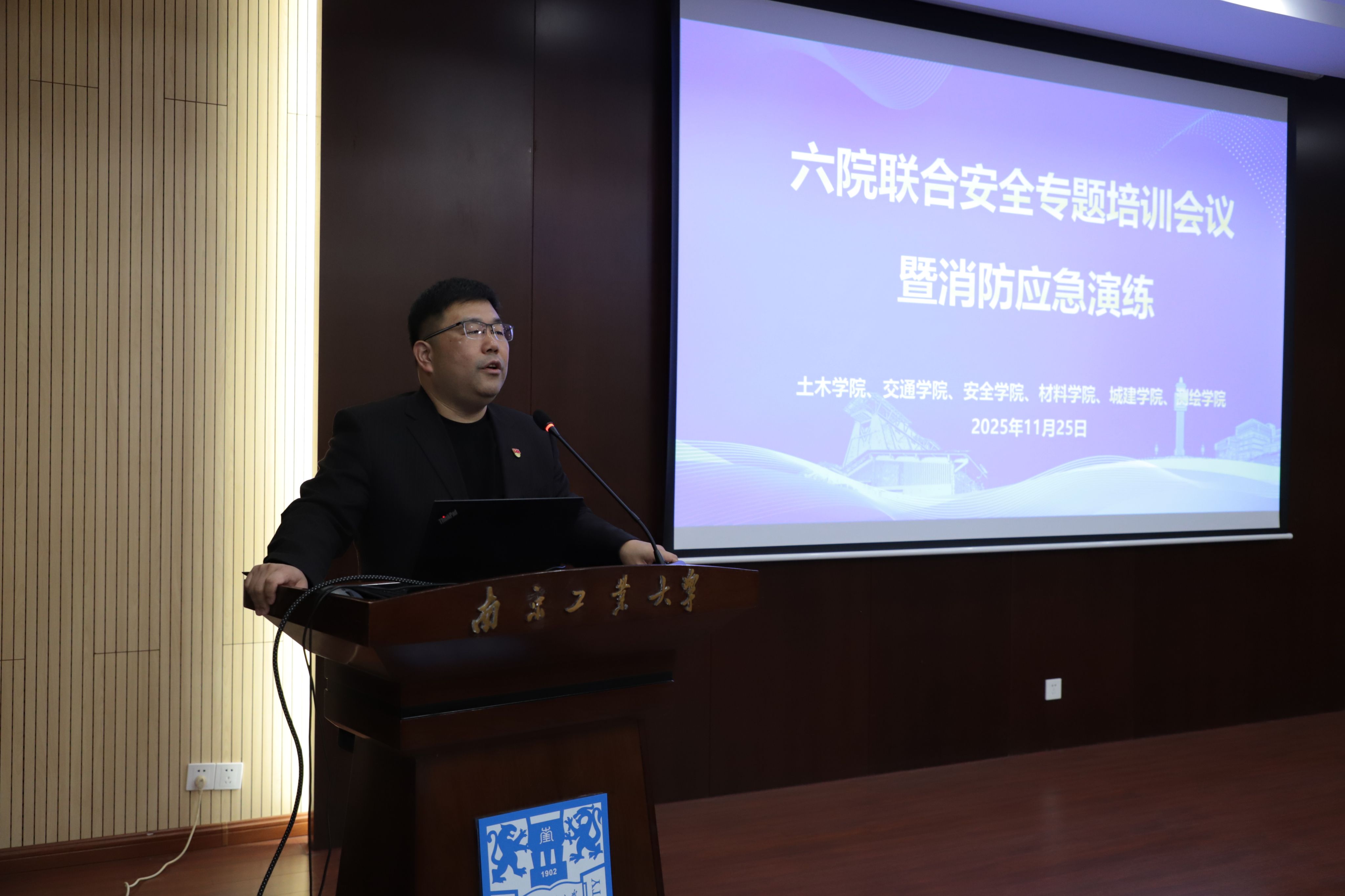 11月25日下午,在校实验室建设与管理处、保卫处的共同指导下,由土木工程学院承办的“六院联合安全专题会议暨消防应急演练活动”在立德楼举行。安全科学与工程学院党委书记郑娟、材料科学与工程学院党委书记高树军、城市建设学院党委书记段然堂、交通运输工程学院党委书记许翠梅、土木工程学院副院长杨会峰、保卫处刘世伟科长、实验室建设与管理处李强科长,以及六院相关教师、实验室管理人员、学生共计160余人参加了本次活动。会议由土木工程学院党委书记张涛主持。