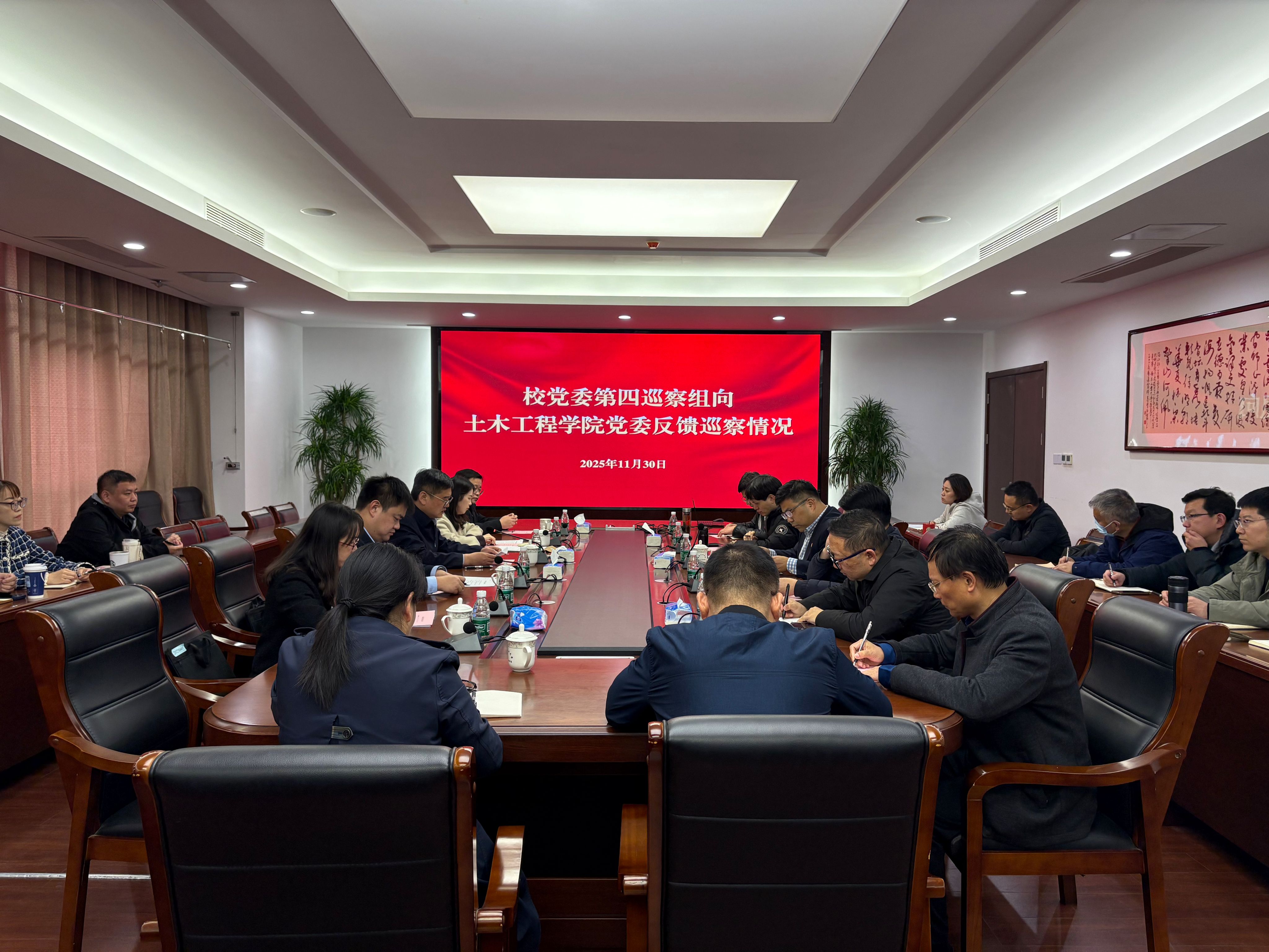 根据学校党委巡察工作安排,2025年11月30日,第四巡察组向土木工程学院党委反馈巡察情况。第四巡察组组长郭凯向土木工程学院党委反馈了巡察情况,对抓好巡察整改工作提出要求。土木工程学院党委书记张涛主持会议并作表态发言。