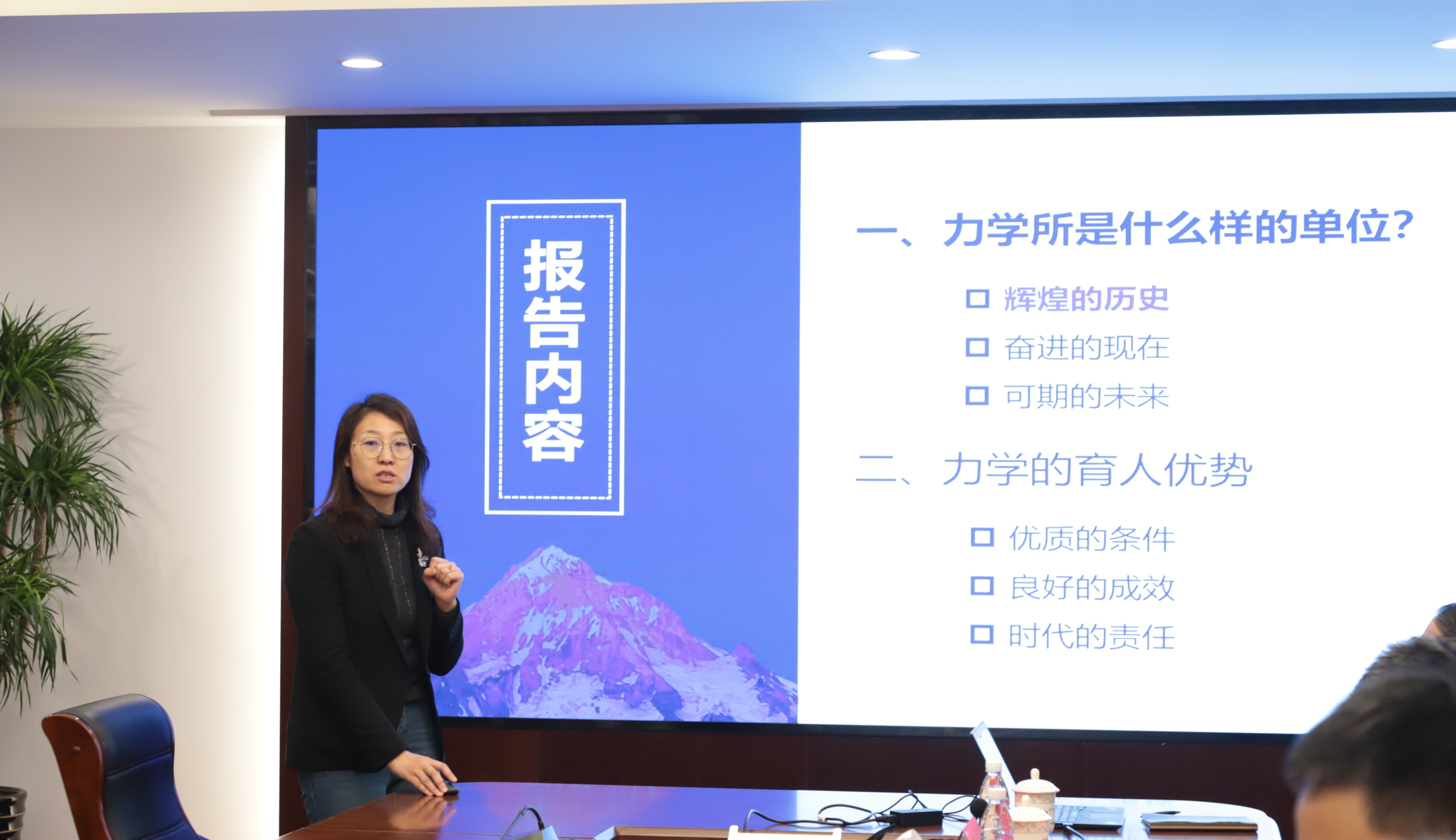 刘丽副处长从历史积淀、发展现状与未来规划三个维度,系统梳理了中国科学院力学研究所的辉煌发展历程,详细介绍了力学所在学科建设、科研平台搭建、人才培养等方面的深厚积累与独特优势,让英才班同学们直观领略到前沿科研平台的硬核实力与力学科研领域的探索魅力。