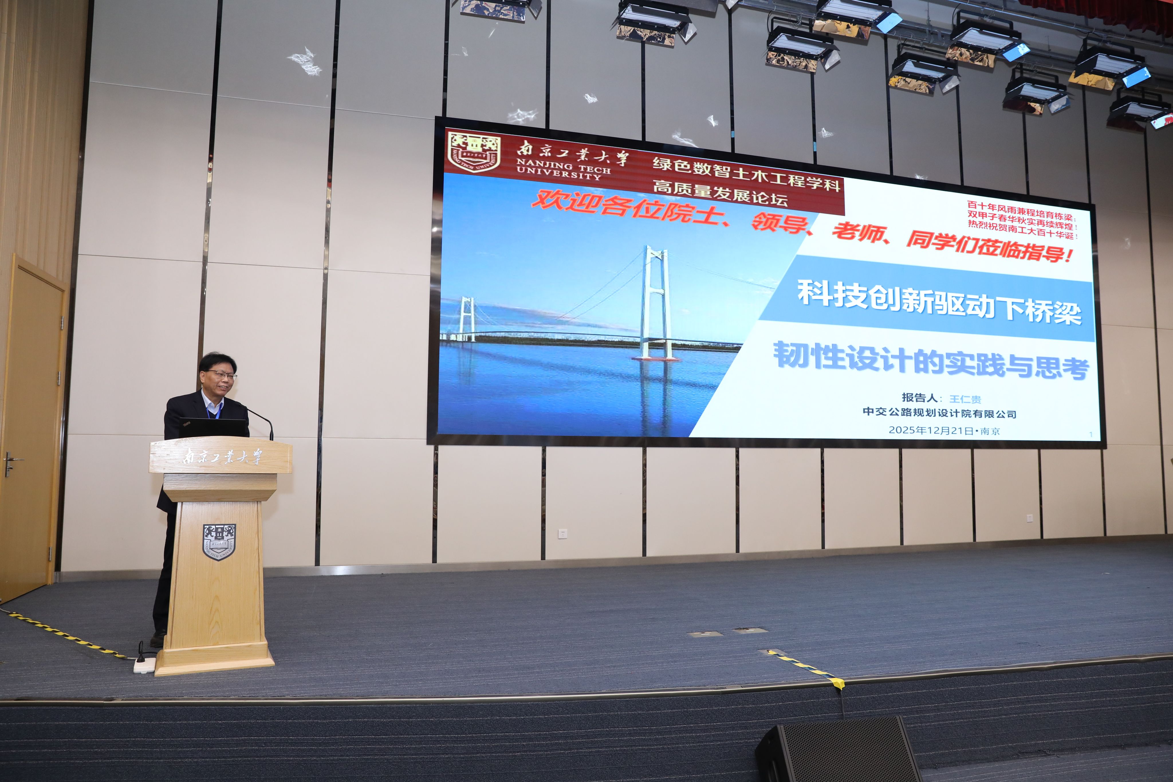 12月21日,恰逢土木工程学科办学110周年,我校举办绿色数智土木工程学科高质量发展论坛。中国工程院院士、同济大学教授吕西林,中国工程院院士、北京工业大学教授杜修力,校党委书记荆晅,中国建筑第三工程局党委书记、董事长陈卫国,中建科工集团党委书记、董事长吴红涛,全国工程勘察设计大师王仁贵,江苏省住房和城乡建设厅副厅长路宏伟等嘉宾莅临现场。