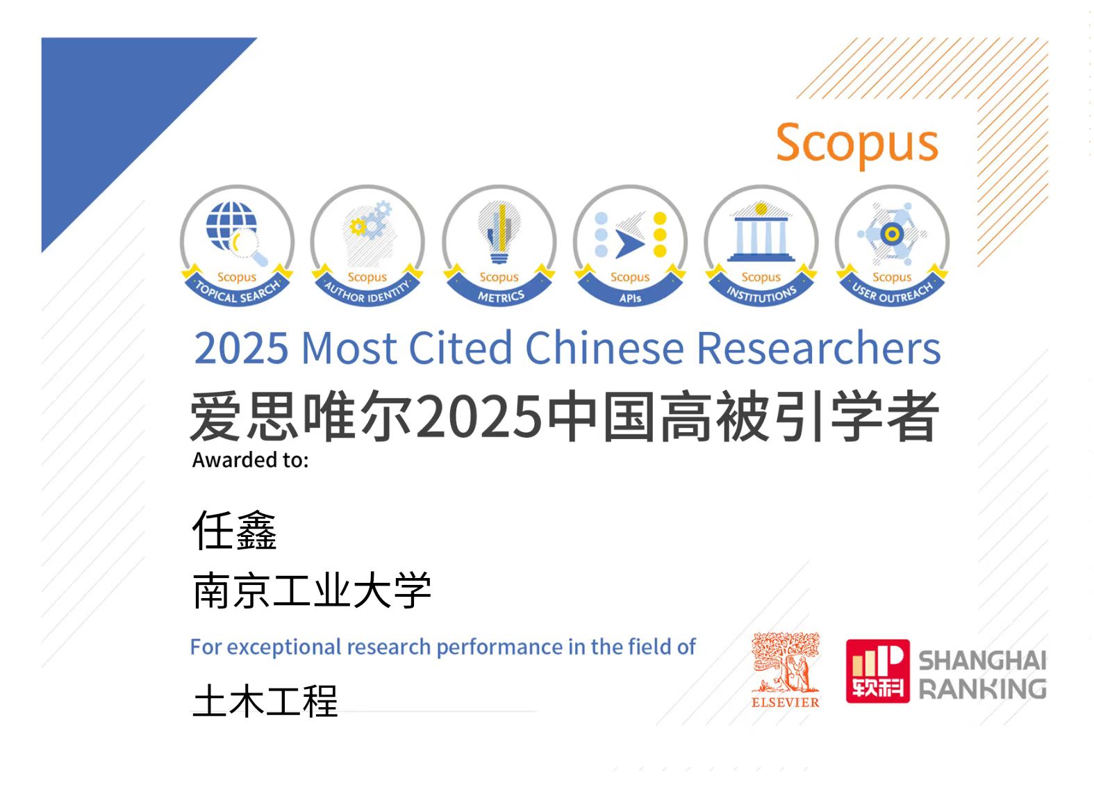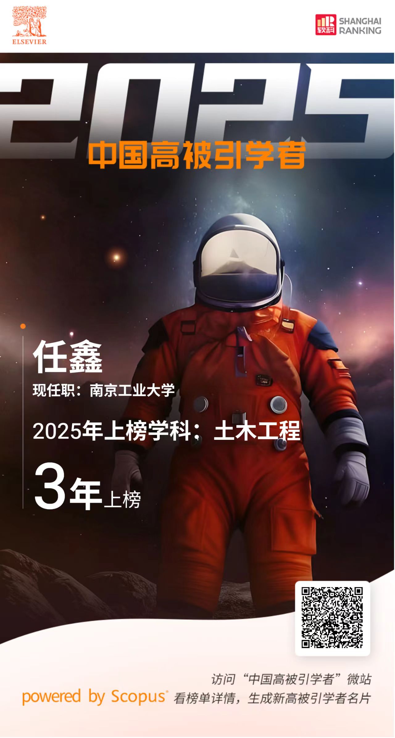 2026年1月30日,爱思唯尔(Elsevier)发布了 2025“中国高被引学者”(Highly Cited Chinese Researchers)榜单。我院任鑫教授再次入选土木工程学科高被引学者,任鑫教授连续三年(2023–2025)登榜。