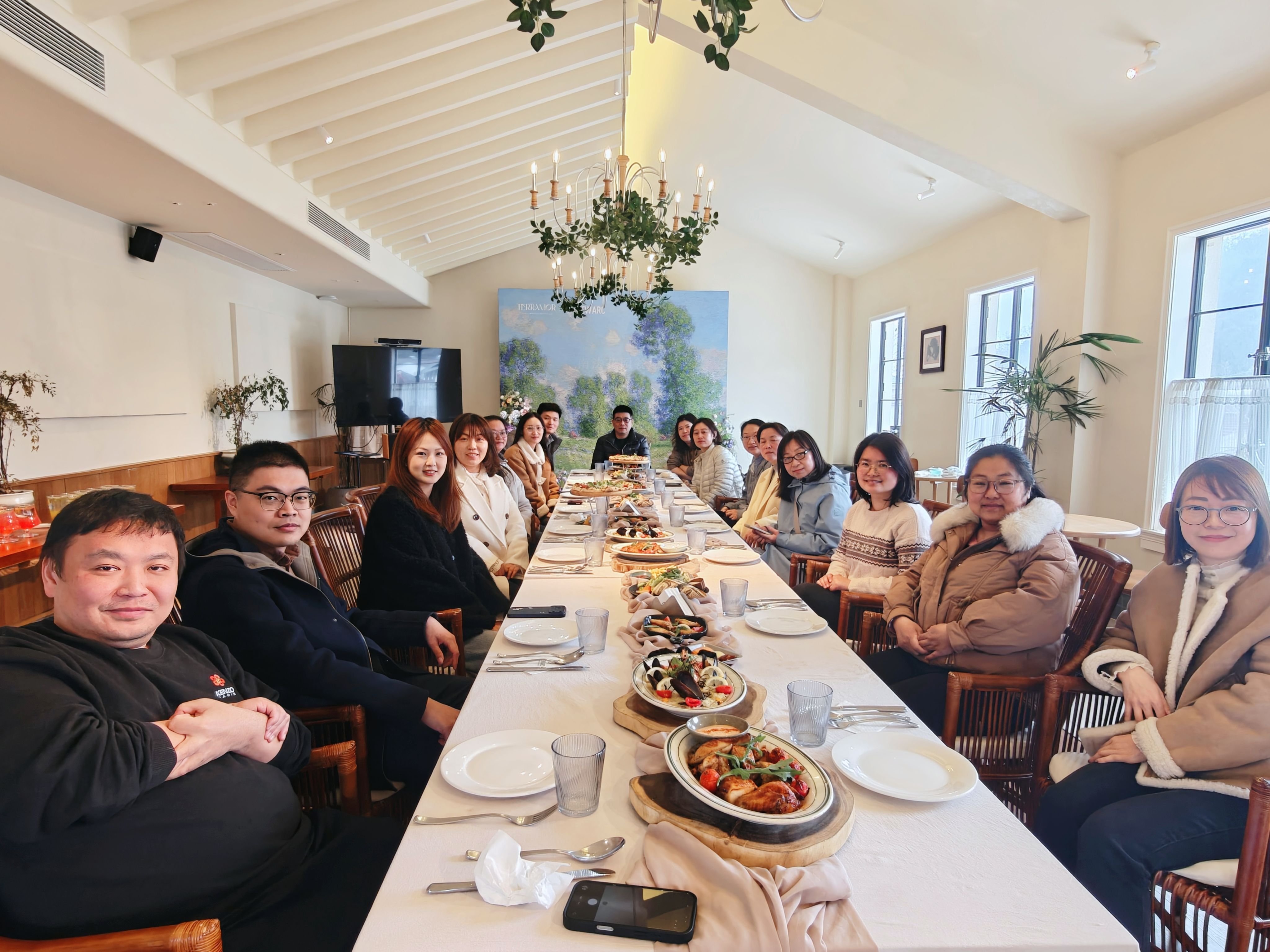 老师们漫步在响堂村的乡间小径,远山如黛,草木萌发,春日阳光洒在错落的民居与青翠山野之间。大家边走边聊,时而驻足拍照,在自然与人文交融的村落里感受春意的涌动。中午,活动转至花园餐厅。窗外远山绵延、绿意葱茏,室内笑语盈盈、暖意融融。老师们品尝着精致的餐品,在轻松的氛围中闲话日常。餐叙间,学院工会向女教职工们致以节日问候,感谢她们在工作一线的辛勤付出。