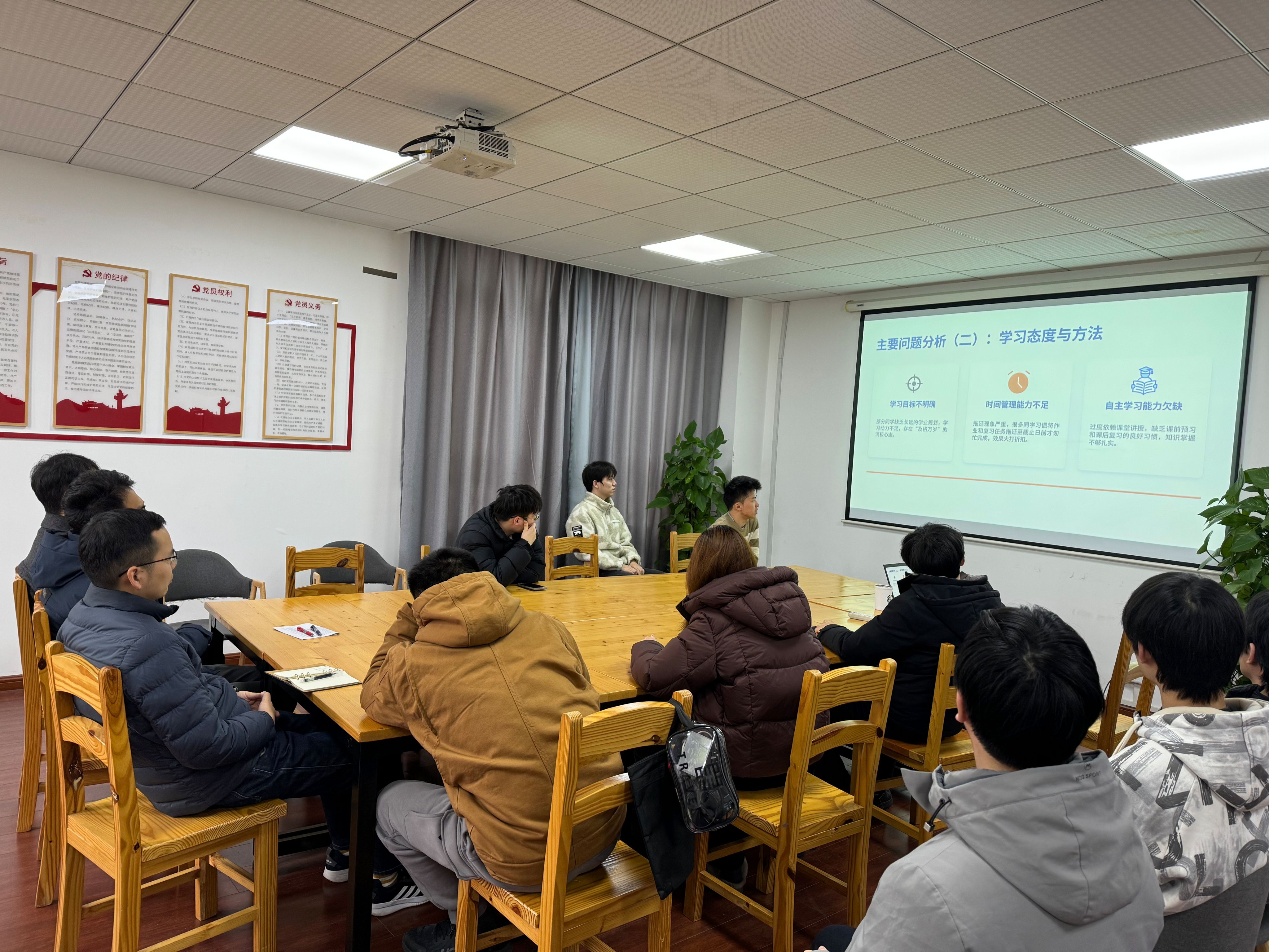 2025级辅导员黄乐、姜小雨分别介绍所带班级上一学期总体情况和学习考试数据,2025级助理班主任详细介绍了各班上学期期末考试情况、班风学风目前存在的问题和下一步工作计划。各班导师交流带班体会,结合所带班级实际情况为提升学生学风班风建言献策,提出切实可行的学业帮扶举措和学风建设措施。