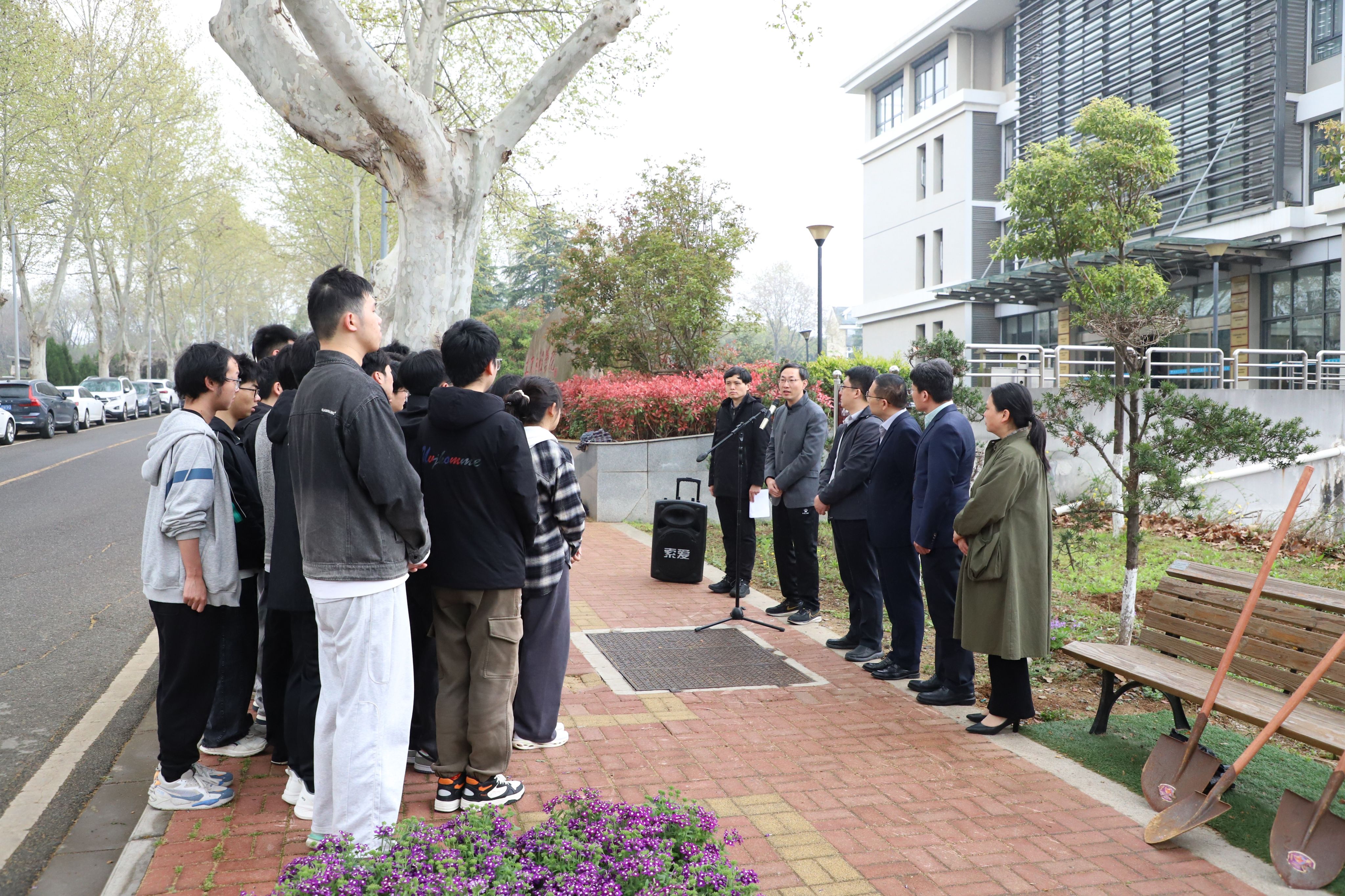 春风育新绿,精神永传承。4月3日上午,土木工程学院在立德楼东南麓“松樟园”举行“赓续红色血脉,传承松樟精神”主题活动。学院领导班子成员、辅导员代表、学生党员代表、胡松林奖学金受助学子代表等参加活动。活动由院党委副书记路遥主持。