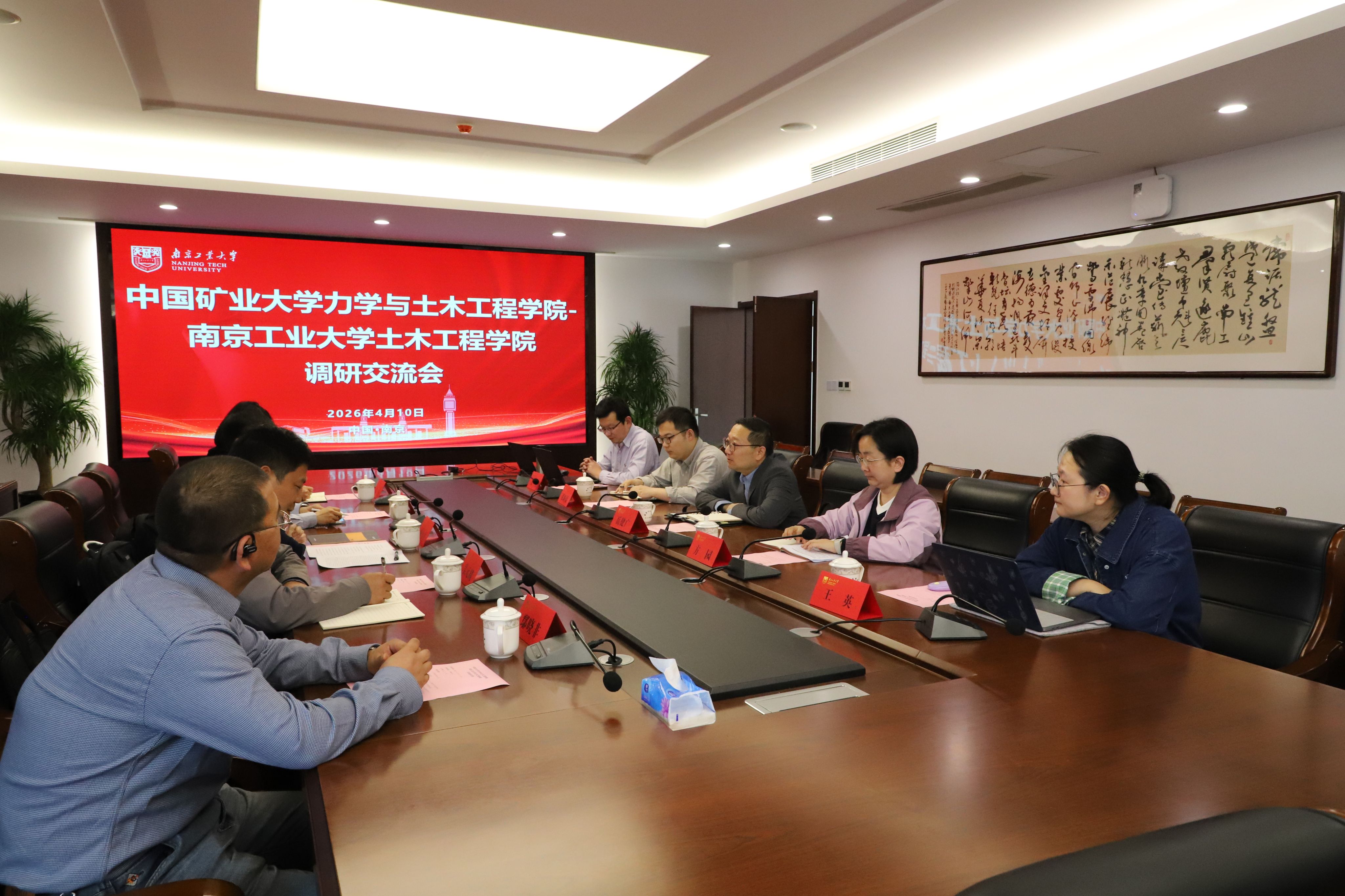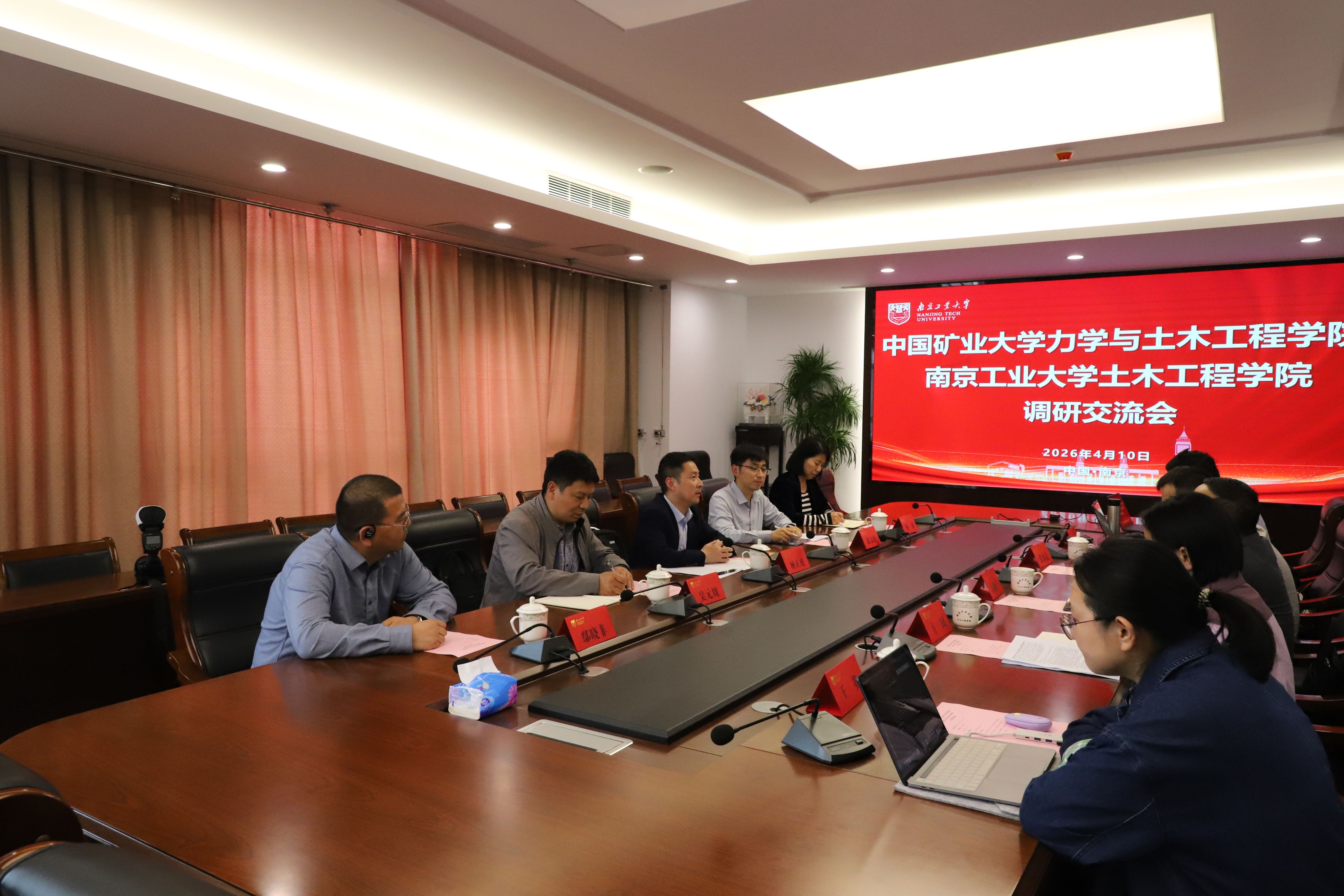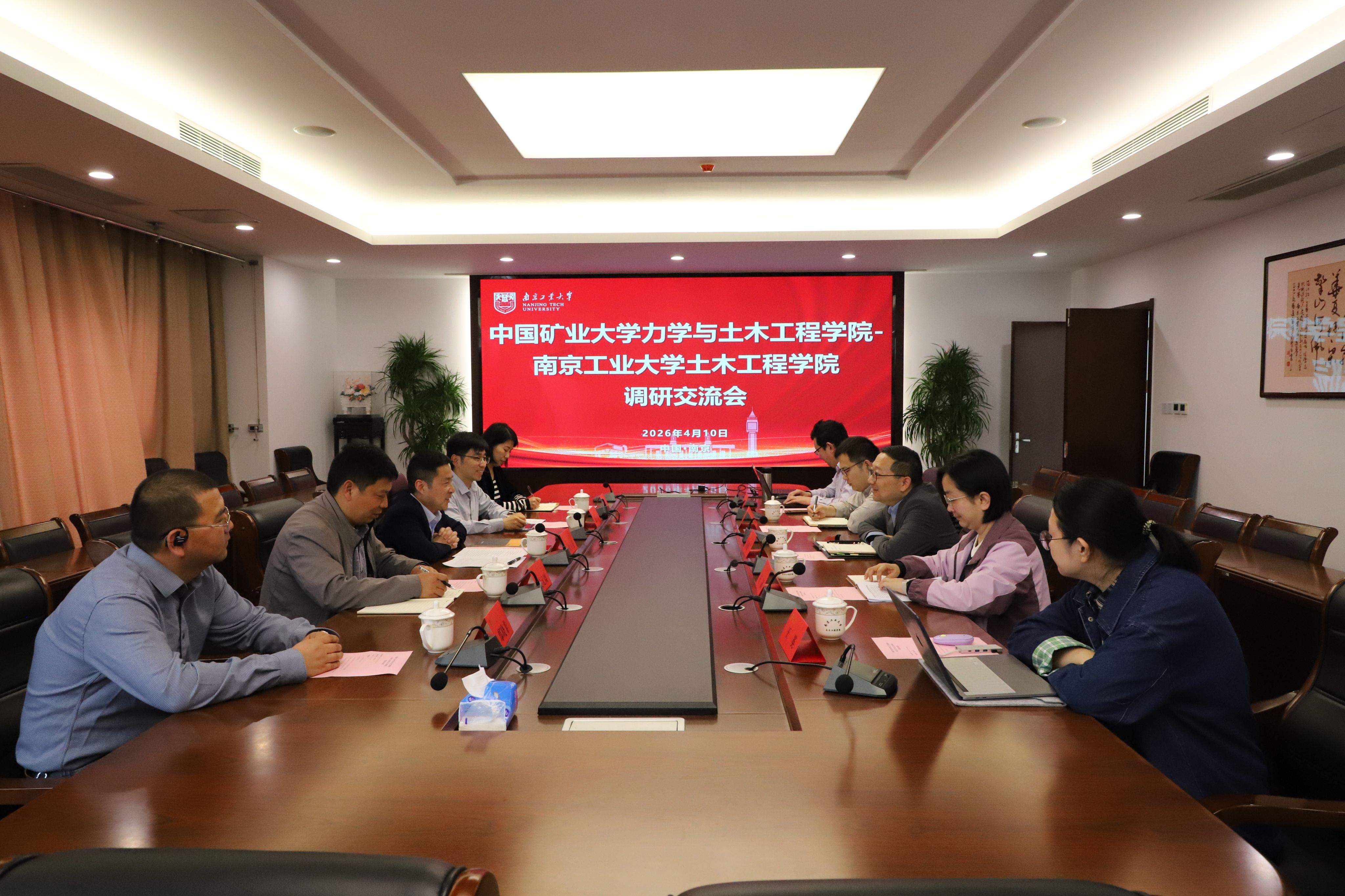 2025 年 4 月 10 日,中国矿业大学力学与土木工程学院副院长顾正虎一行赴南京工业大学土木工程学院交流,会议由实验中心万里主任主持。