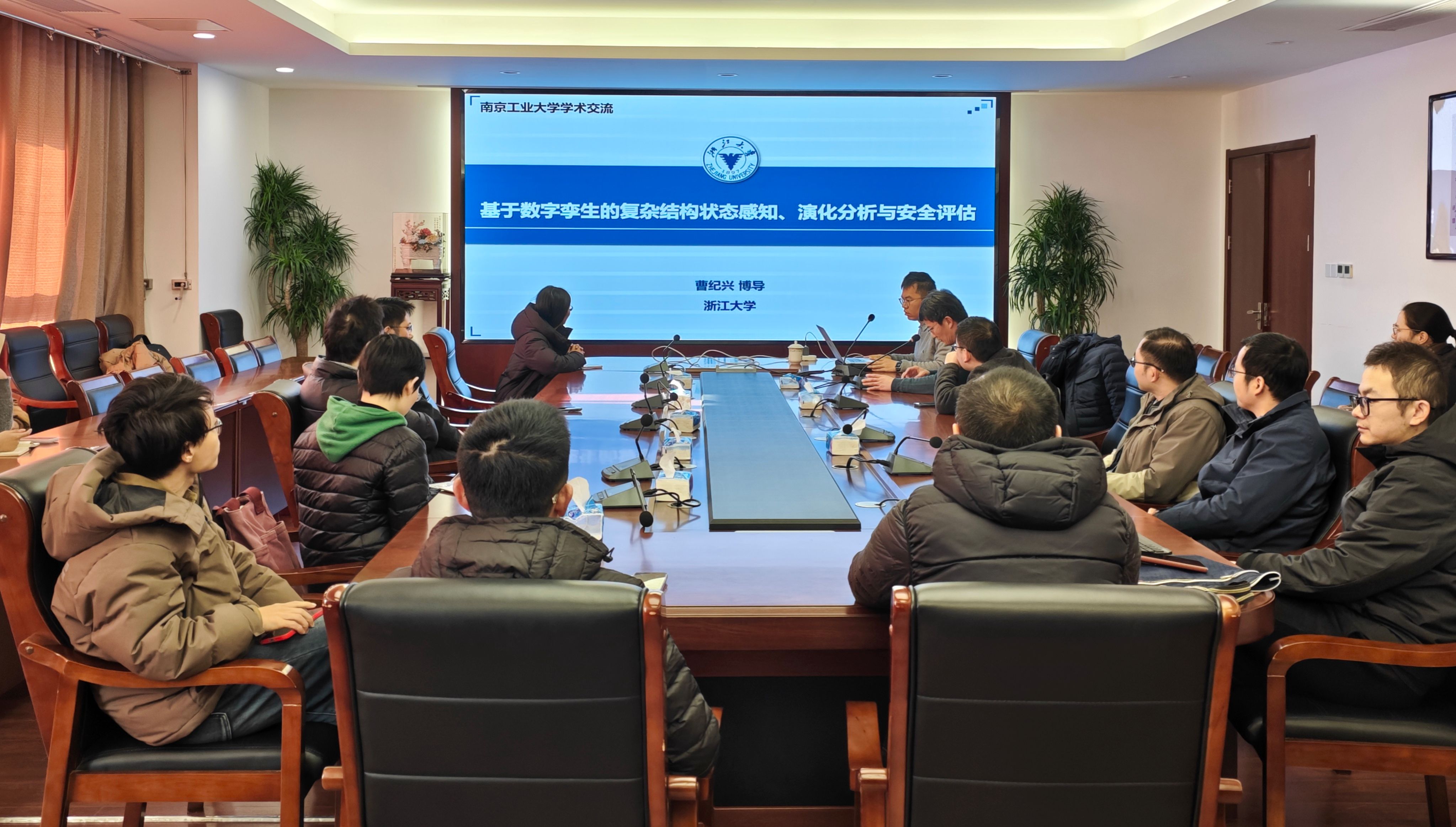 12月26日上午,应南京工业大学土木工程学院邀请,浙江大学“百人计划”研究员、国家高层次青年人才曹纪兴博士来我院作了题为“基于数字孪生的复杂结构状态感知、演化分析与安全评估”的学术报告。报告会由土木工程学院副院长杨会峰教授主持,院长方海教授、学院教师及部分博硕士研究生参加了本次学术活动。