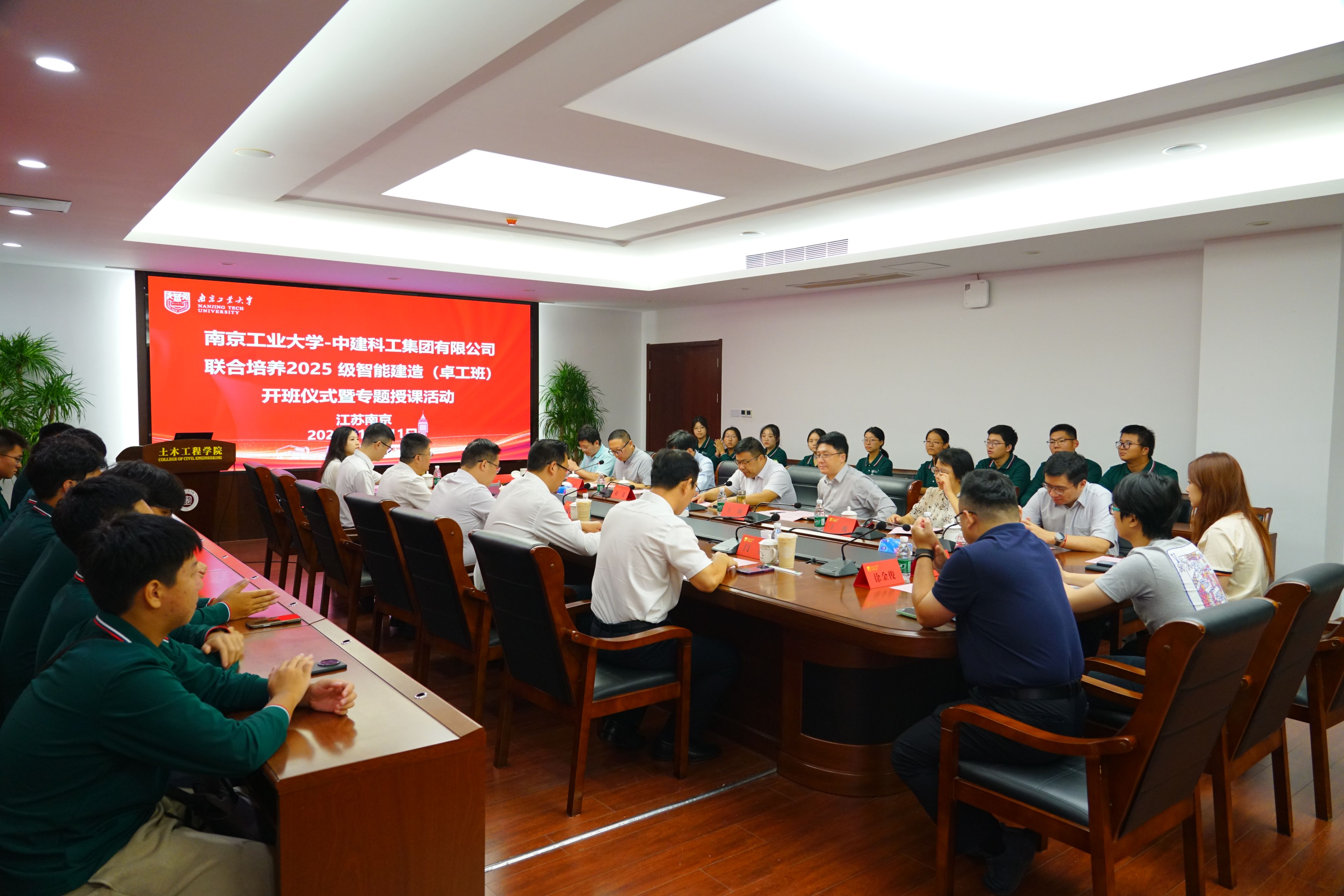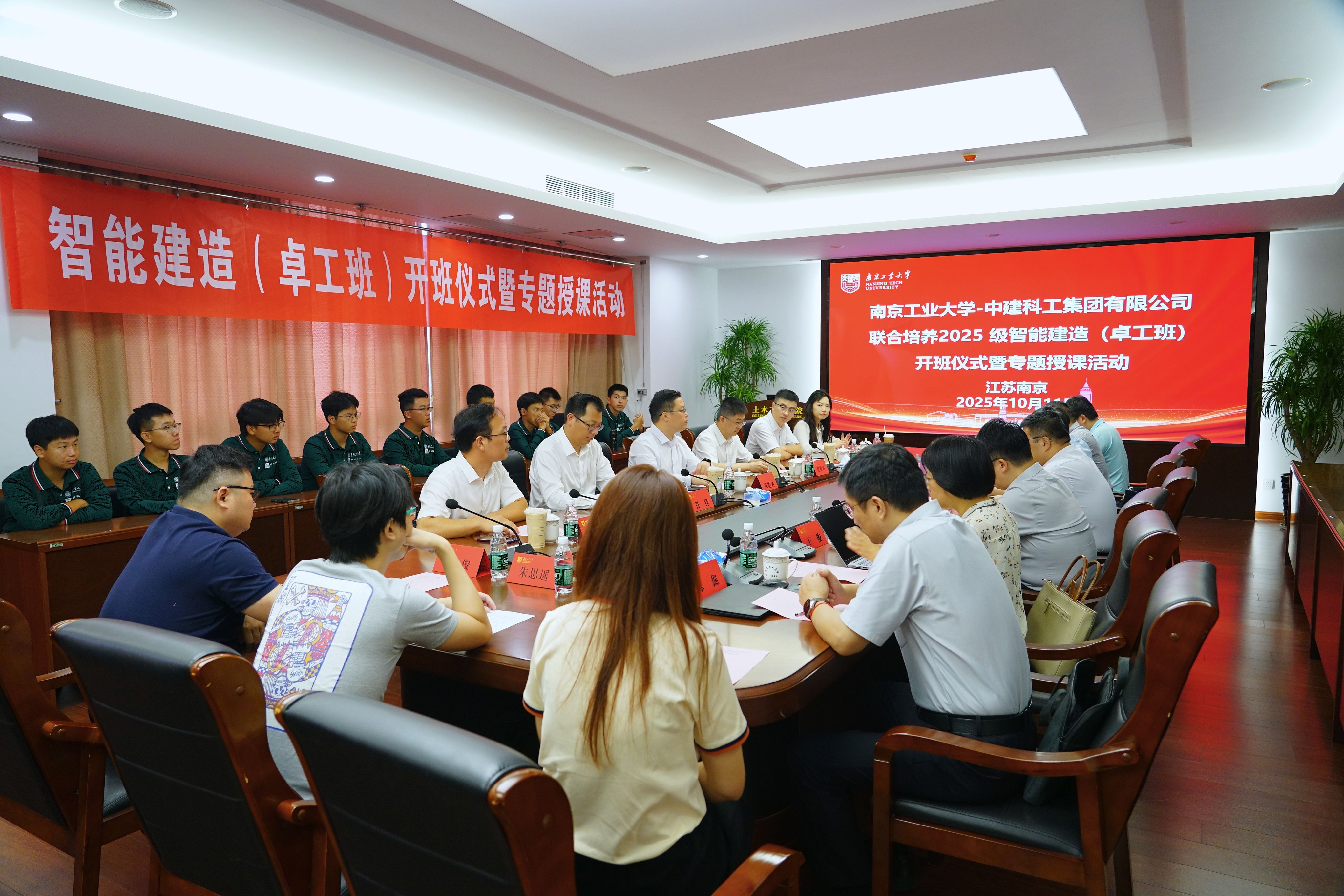 10 月11日,我校与中建科工集团有限公司联合培养 2025 级智能建造(卓工班)开班仪式暨专题授课活动顺利举行。中建科工华东大区党委书记、董事长成能名,总工程师张耀林,江苏公司总经理肖洋,土木工程学院党委书记张涛,院长方海等校企双方代表,以及2025级智能建造(卓工班)全体学生参会。仪式由土木工程学院副院长岳健广主持。