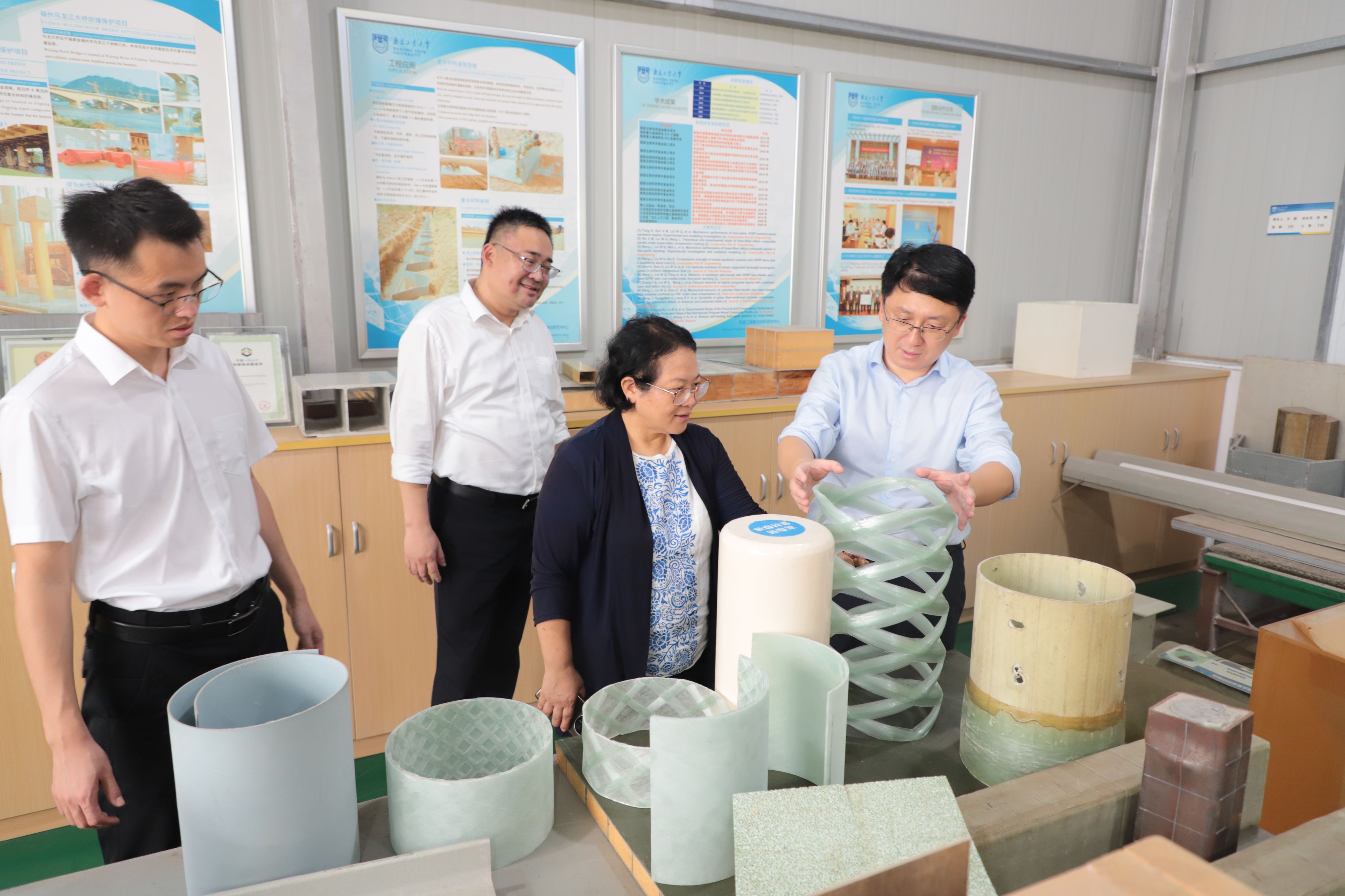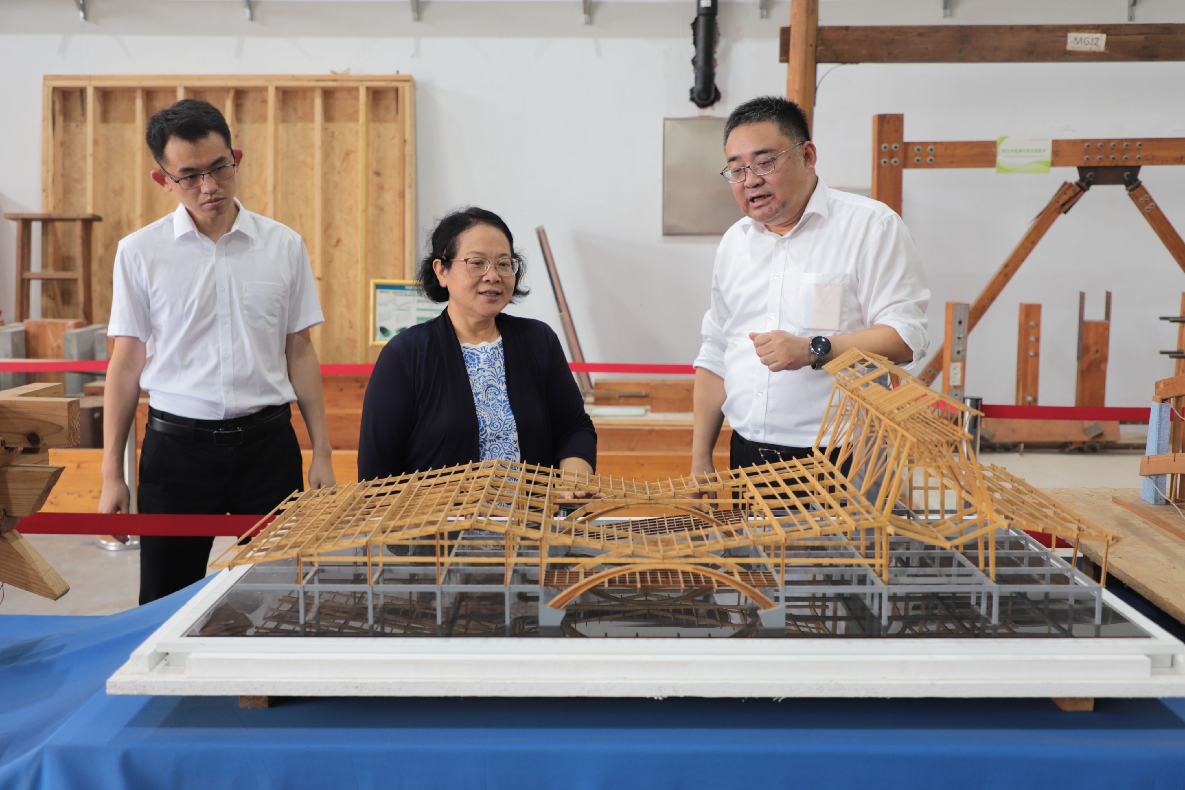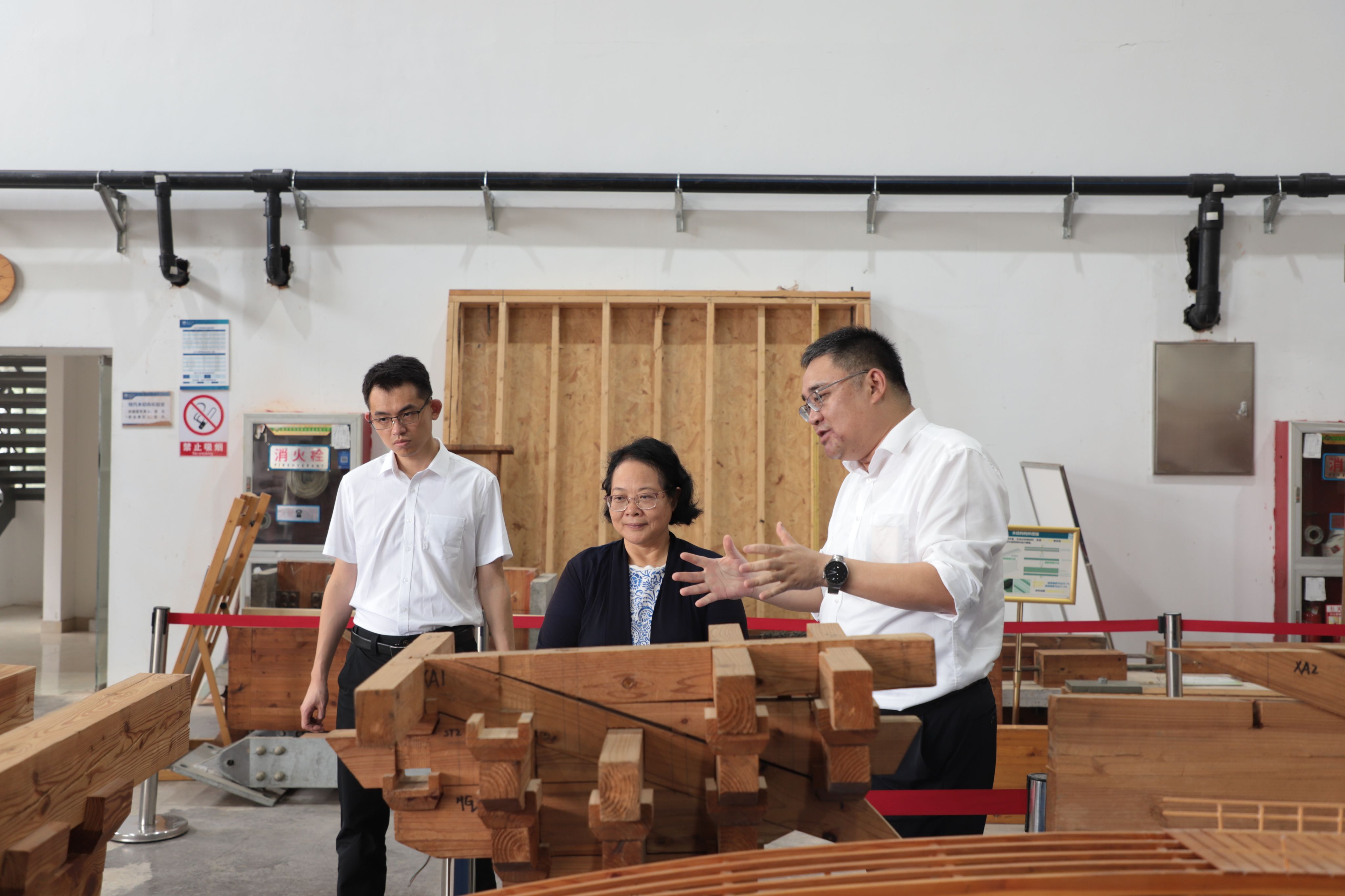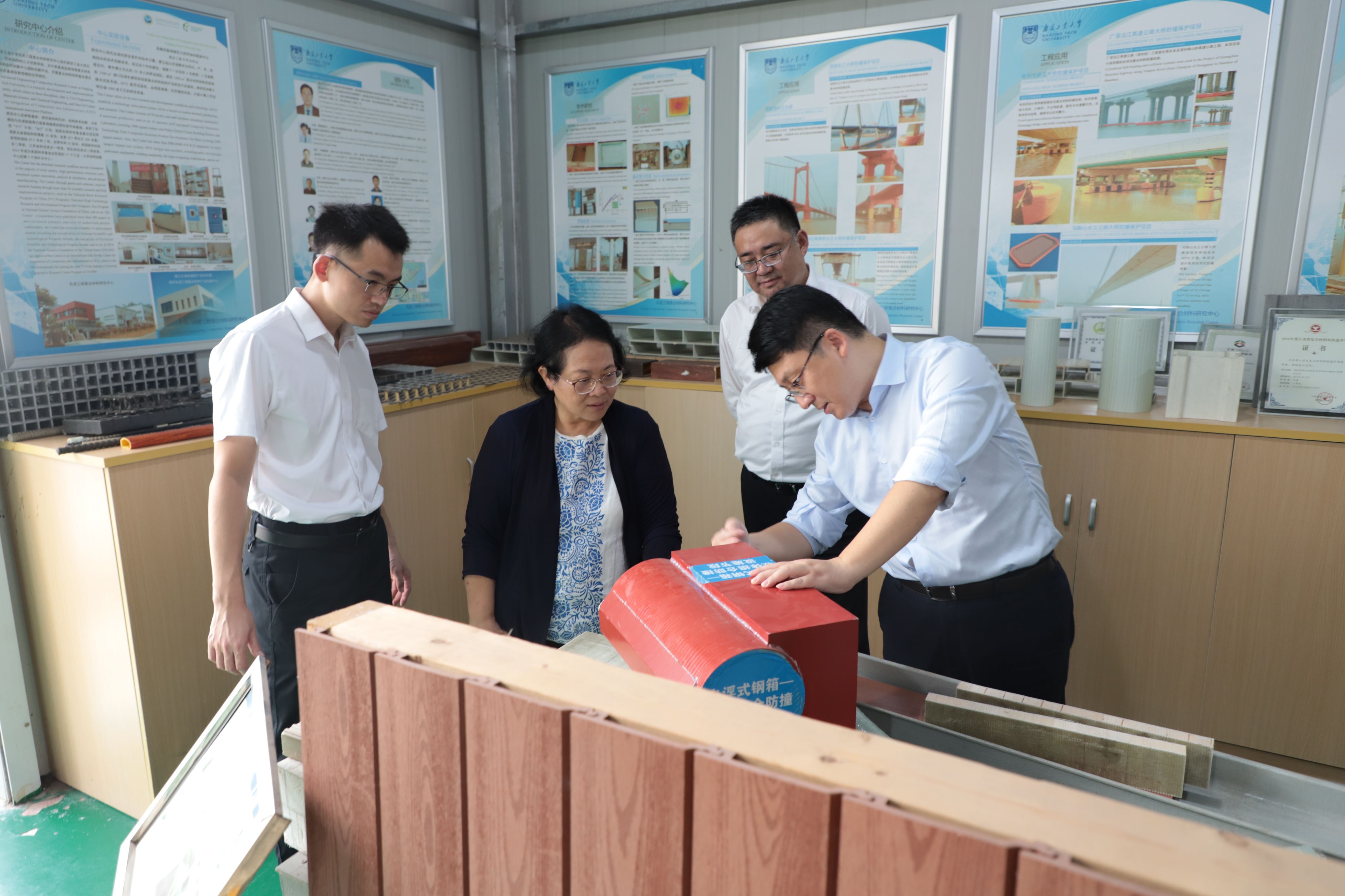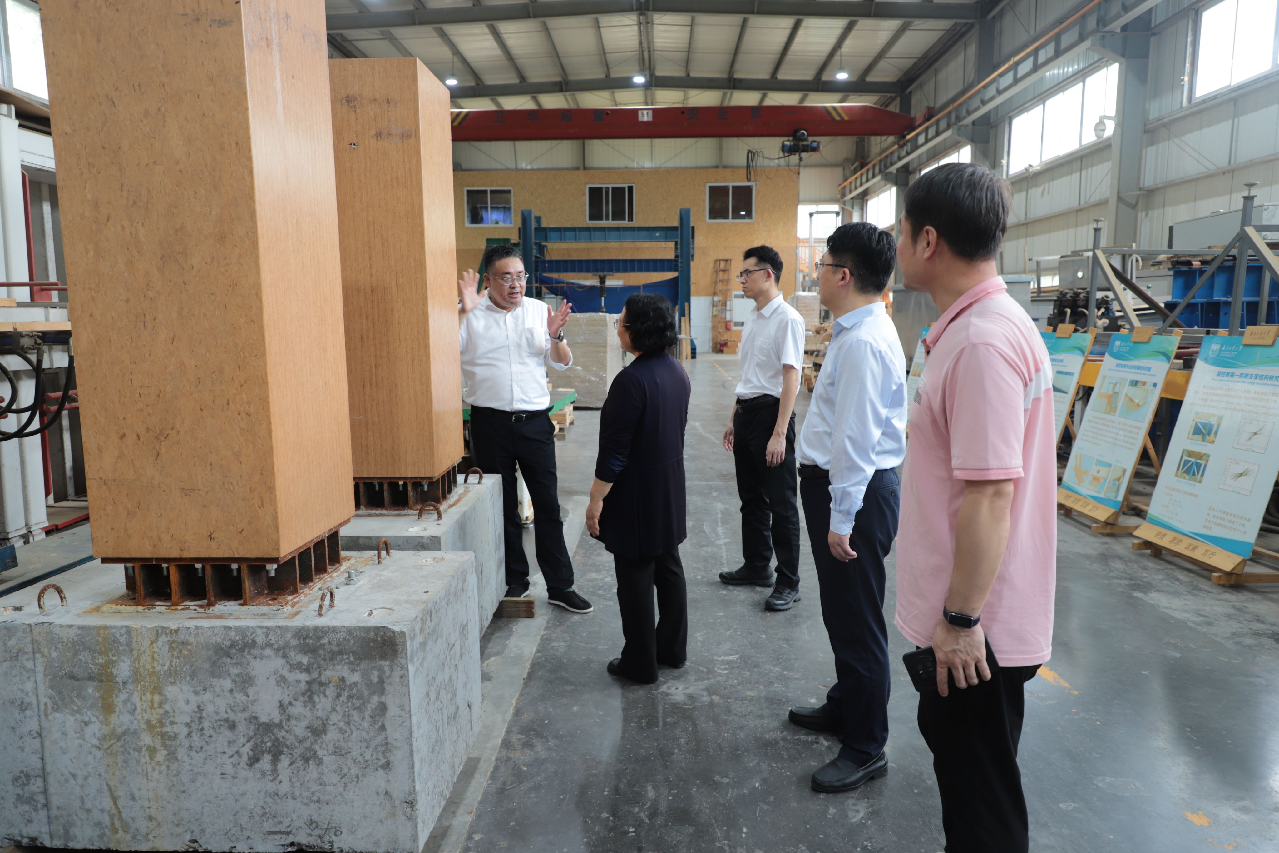 在副校长陆伟东、院长方海的陪同下,陈新司长一行参观了土木工程学院现代木结构实验室、复合材料结构实验室、结构综合实验室等。